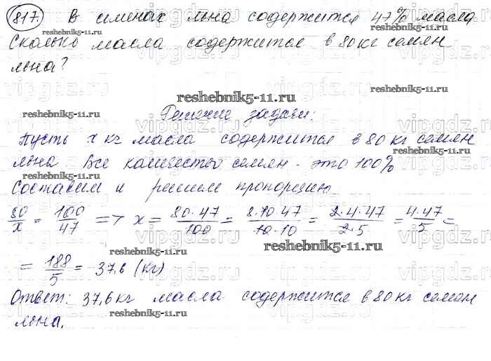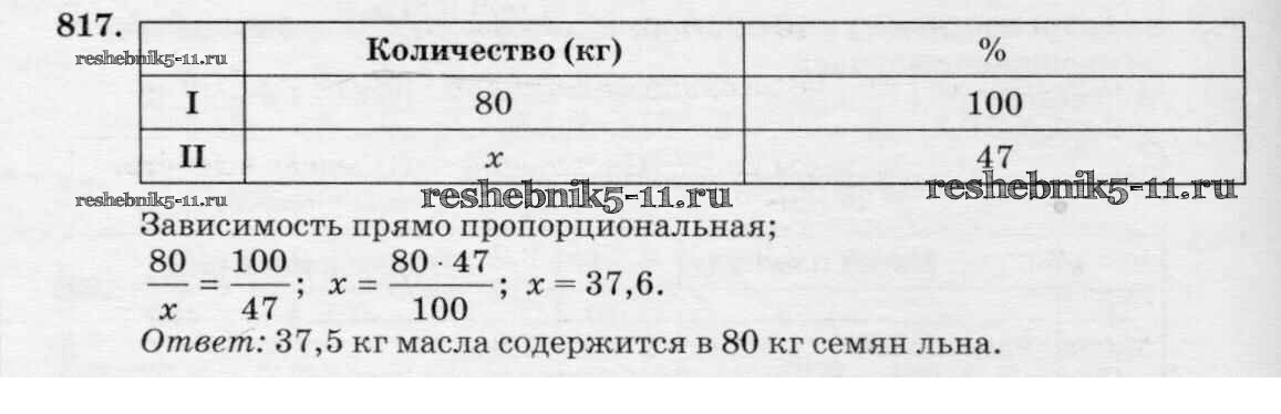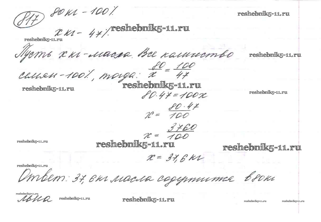 Готовая домашняя работа с ответами по Математике за 6 класс Виленкин, Жохов, Чесноков, Шварцбурд Учебник Мнемозина 2014 ФГОС - §4. Отношения и пропорции 817