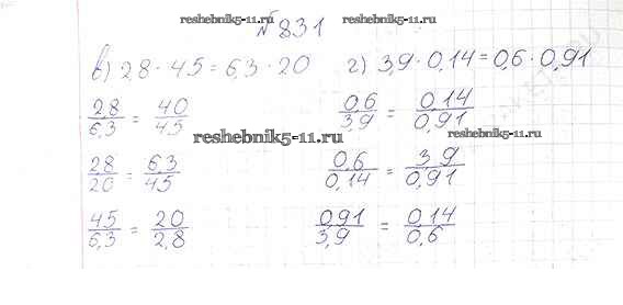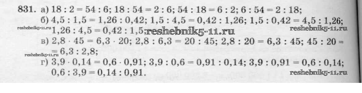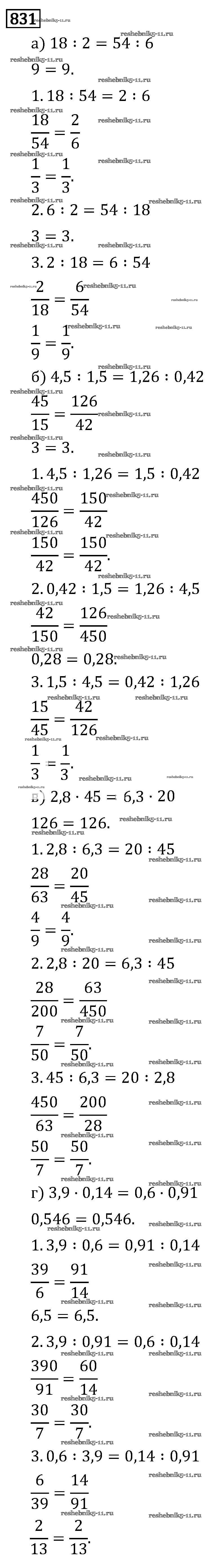 Готовая домашняя работа с ответами по Математике за 6 класс Виленкин, Жохов, Чесноков, Шварцбурд Учебник Мнемозина 2014 ФГОС - §4. Отношения и пропорции 831