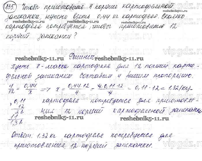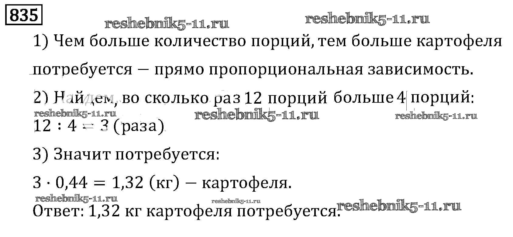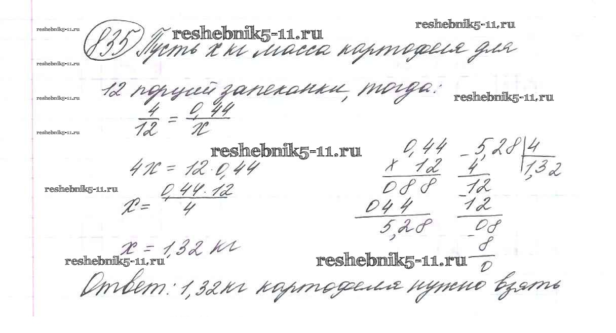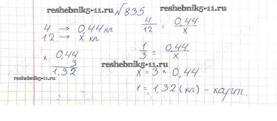 Готовая домашняя работа с ответами по Математике за 6 класс Виленкин, Жохов, Чесноков, Шварцбурд Учебник Мнемозина 2014 ФГОС - §4. Отношения и пропорции 835