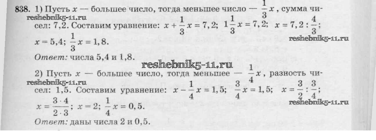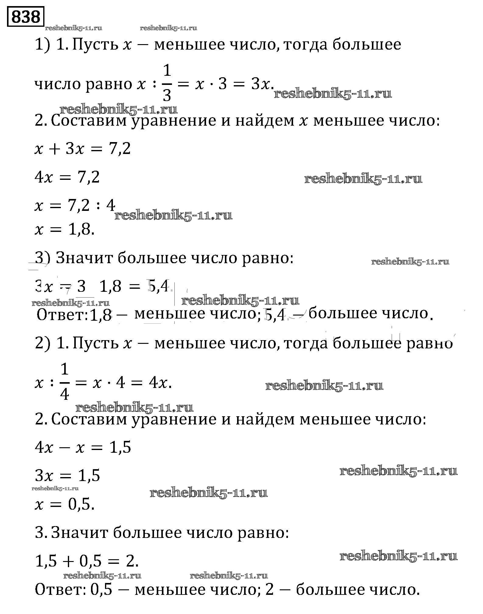Готовая домашняя работа с ответами по Математике за 6 класс Виленкин, Жохов, Чесноков, Шварцбурд Учебник Мнемозина 2014 ФГОС - §4. Отношения и пропорции 838