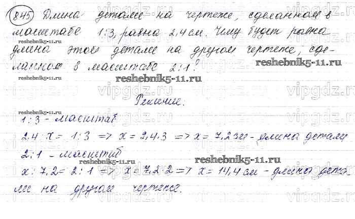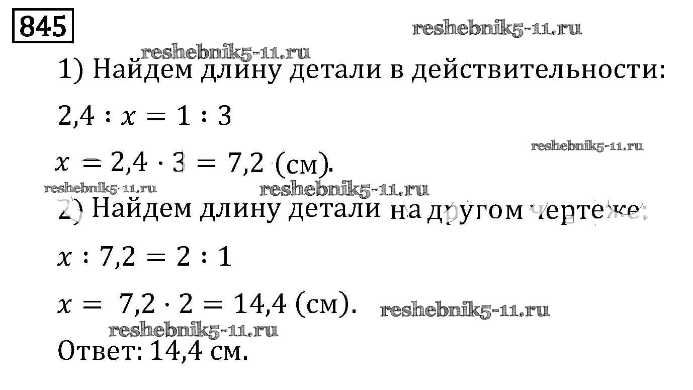 Готовая домашняя работа с ответами по Математике за 6 класс Виленкин, Жохов, Чесноков, Шварцбурд Учебник Мнемозина 2014 ФГОС - §4. Отношения и пропорции 845