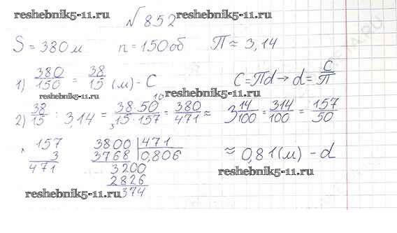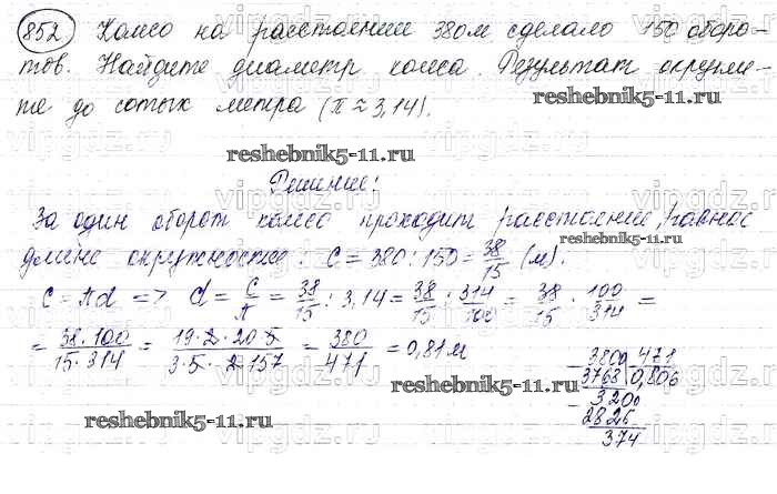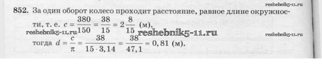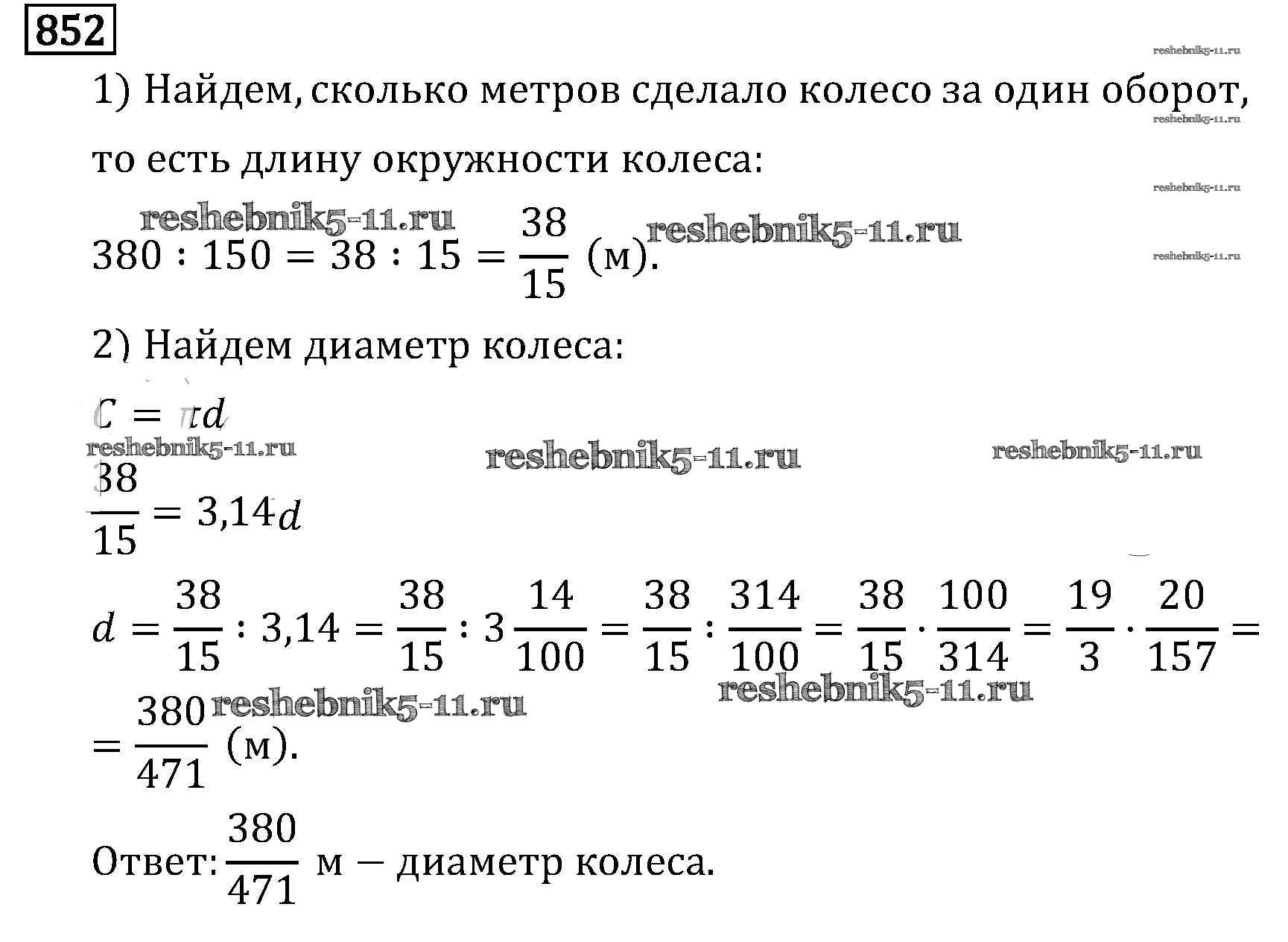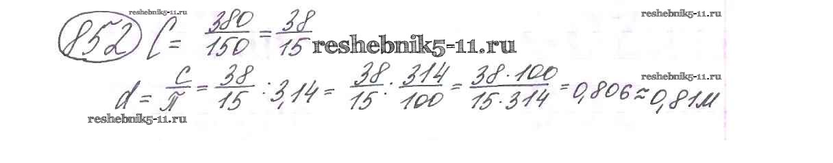 Готовая домашняя работа с ответами по Математике за 6 класс Виленкин, Жохов, Чесноков, Шварцбурд Учебник Мнемозина 2014 ФГОС - §4. Отношения и пропорции 852