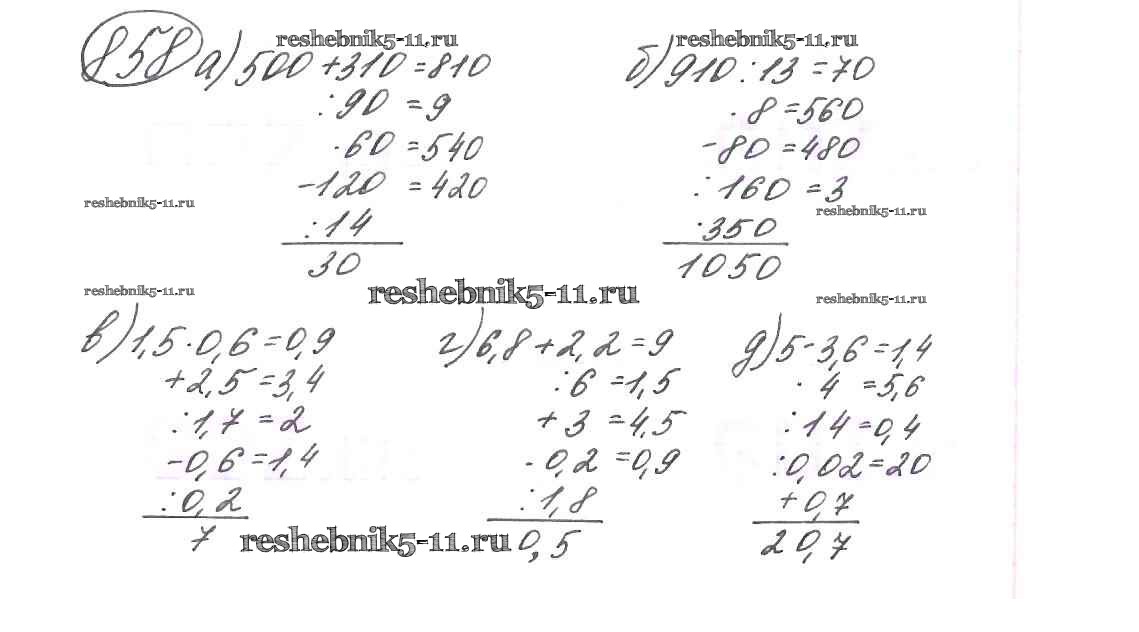 Готовая домашняя работа с ответами по Математике за 6 класс Виленкин, Жохов, Чесноков, Шварцбурд Учебник Мнемозина 2014 ФГОС - §4. Отношения и пропорции 858
