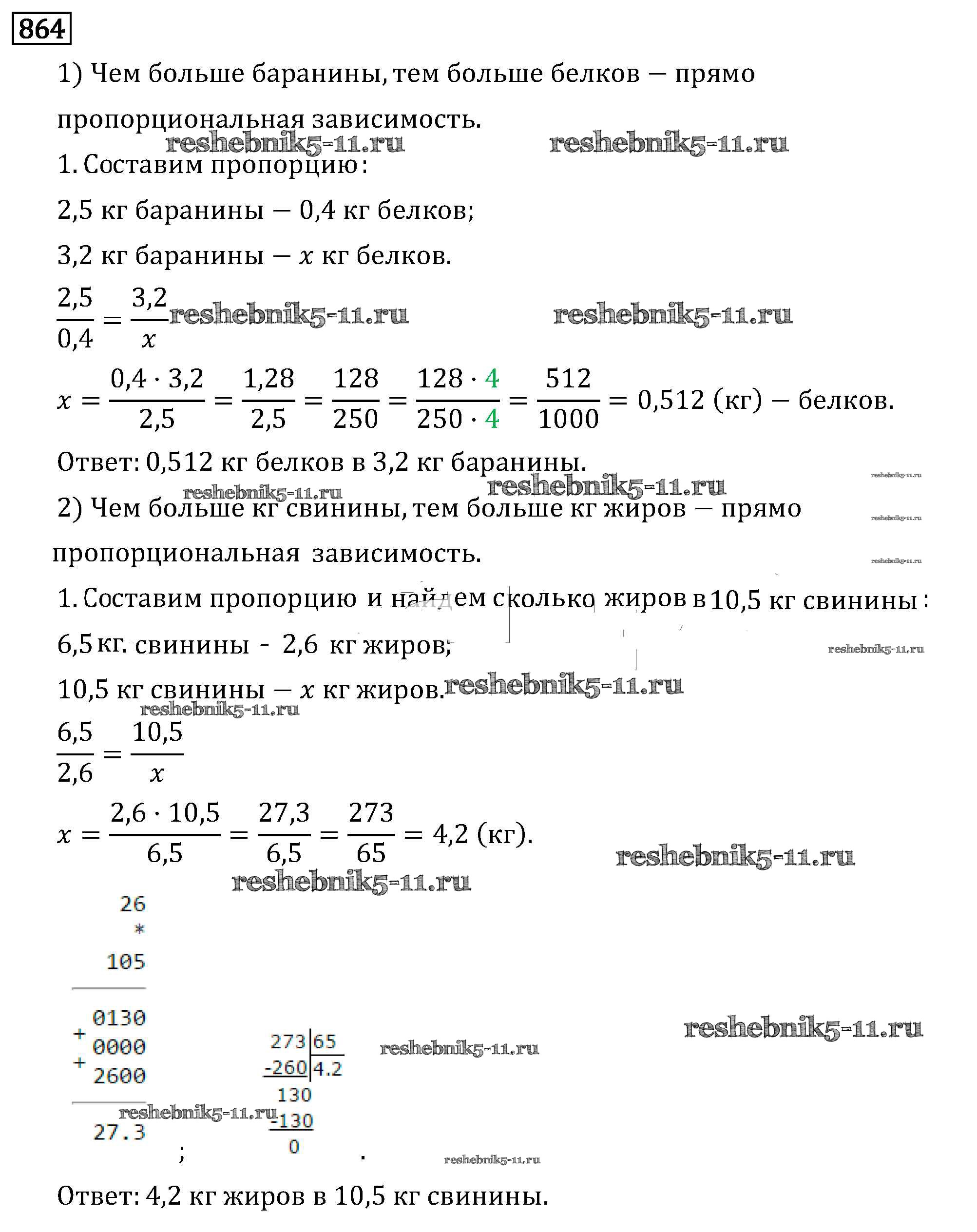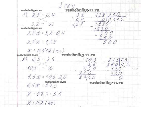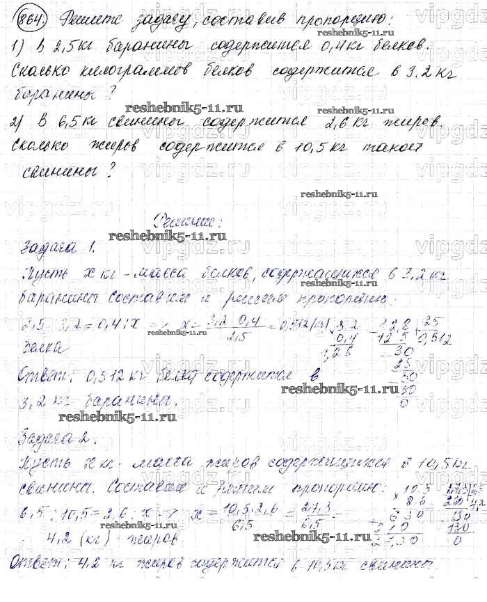 Готовая домашняя работа с ответами по Математике за 6 класс Виленкин, Жохов, Чесноков, Шварцбурд Учебник Мнемозина 2014 ФГОС - §4. Отношения и пропорции 864