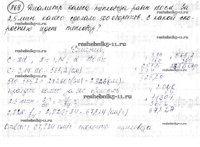 Готовая домашняя работа с ответами по Математике за 6 класс Виленкин, Жохов, Чесноков, Шварцбурд Учебник Мнемозина 2014 ФГОС - §4. Отношения и пропорции 869