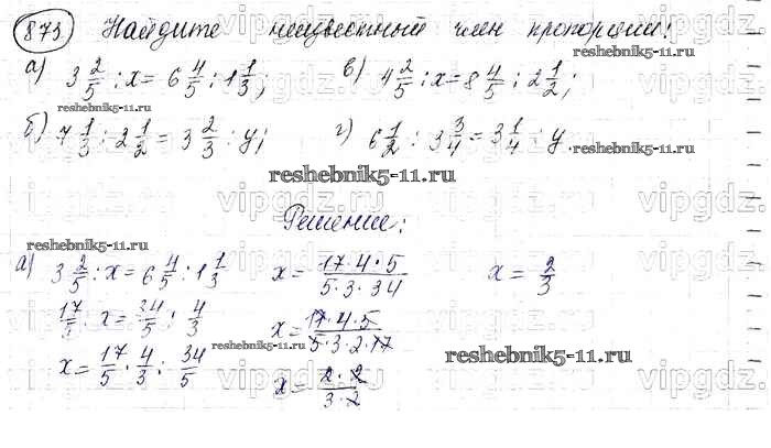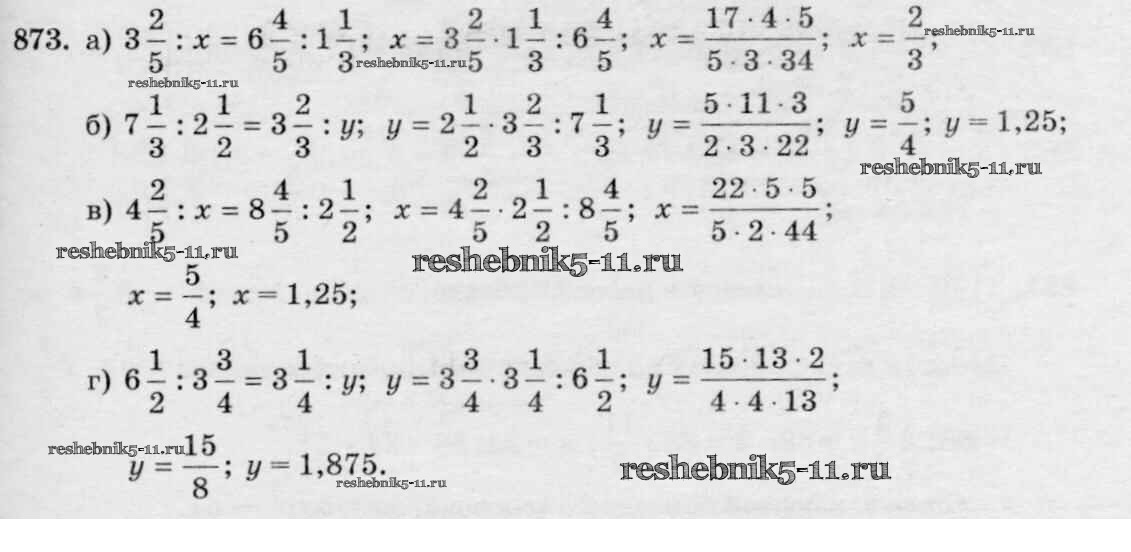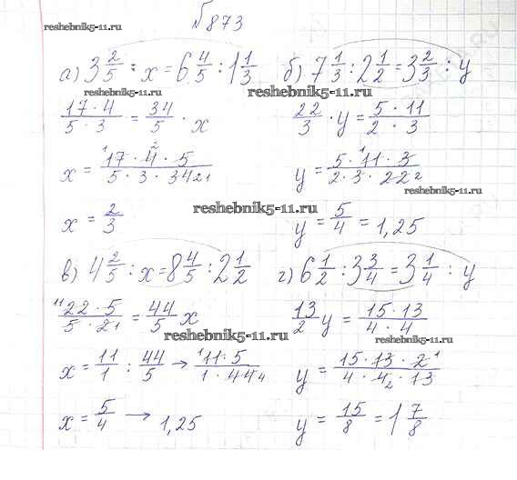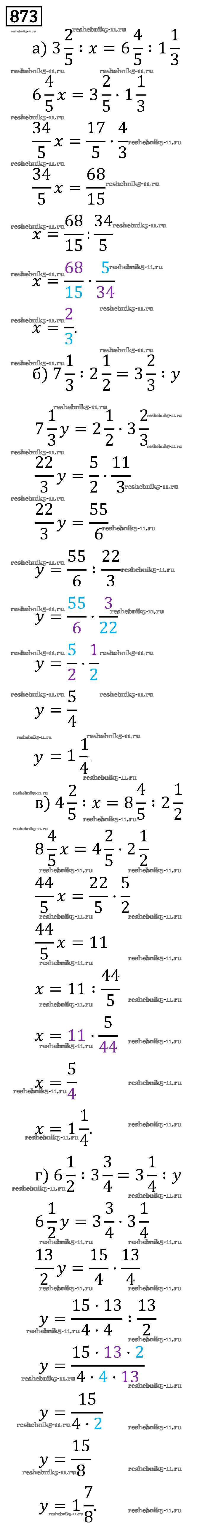 Готовая домашняя работа с ответами по Математике за 6 класс Виленкин, Жохов, Чесноков, Шварцбурд Учебник Мнемозина 2014 ФГОС - §4. Отношения и пропорции 873