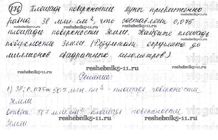 Готовая домашняя работа с ответами по Математике за 6 класс Виленкин, Жохов, Чесноков, Шварцбурд Учебник Мнемозина 2014 ФГОС - §4. Отношения и пропорции 876