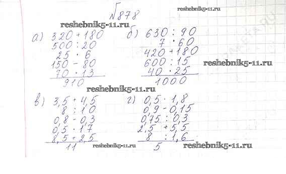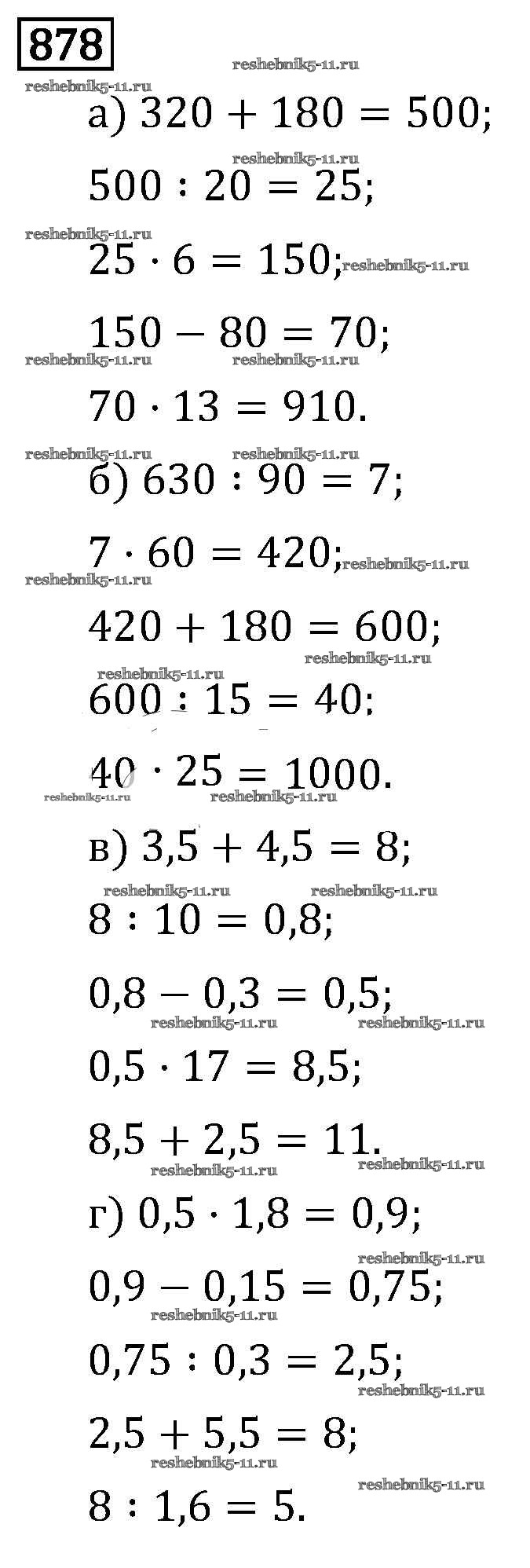 Готовая домашняя работа с ответами по Математике за 6 класс Виленкин, Жохов, Чесноков, Шварцбурд Учебник Мнемозина 2014 ФГОС - §4. Отношения и пропорции 878