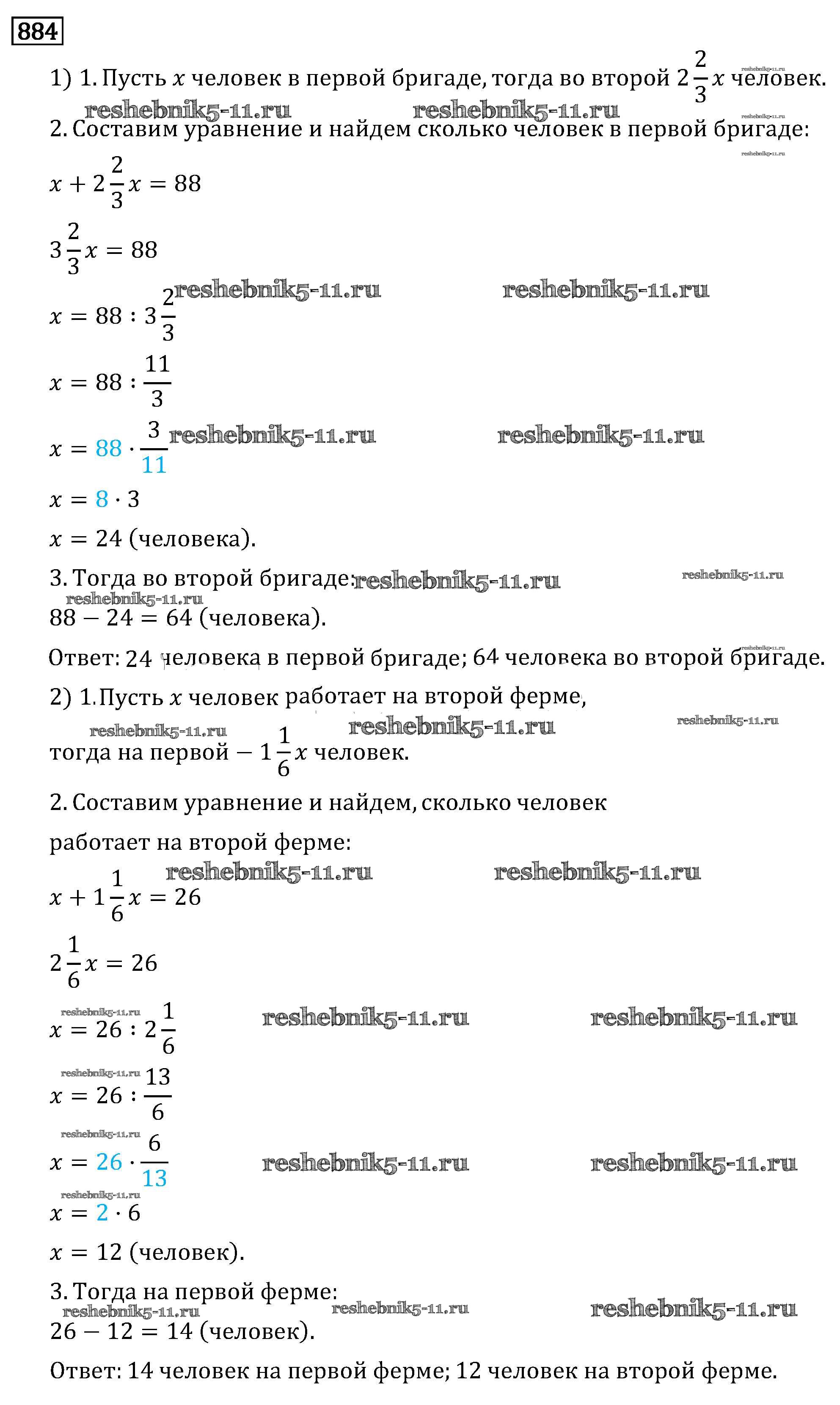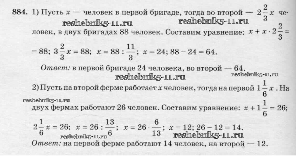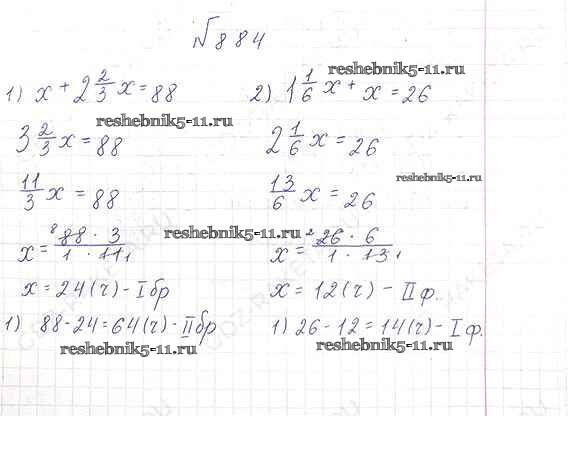 Готовая домашняя работа с ответами по Математике за 6 класс Виленкин, Жохов, Чесноков, Шварцбурд Учебник Мнемозина 2014 ФГОС - §4. Отношения и пропорции 884