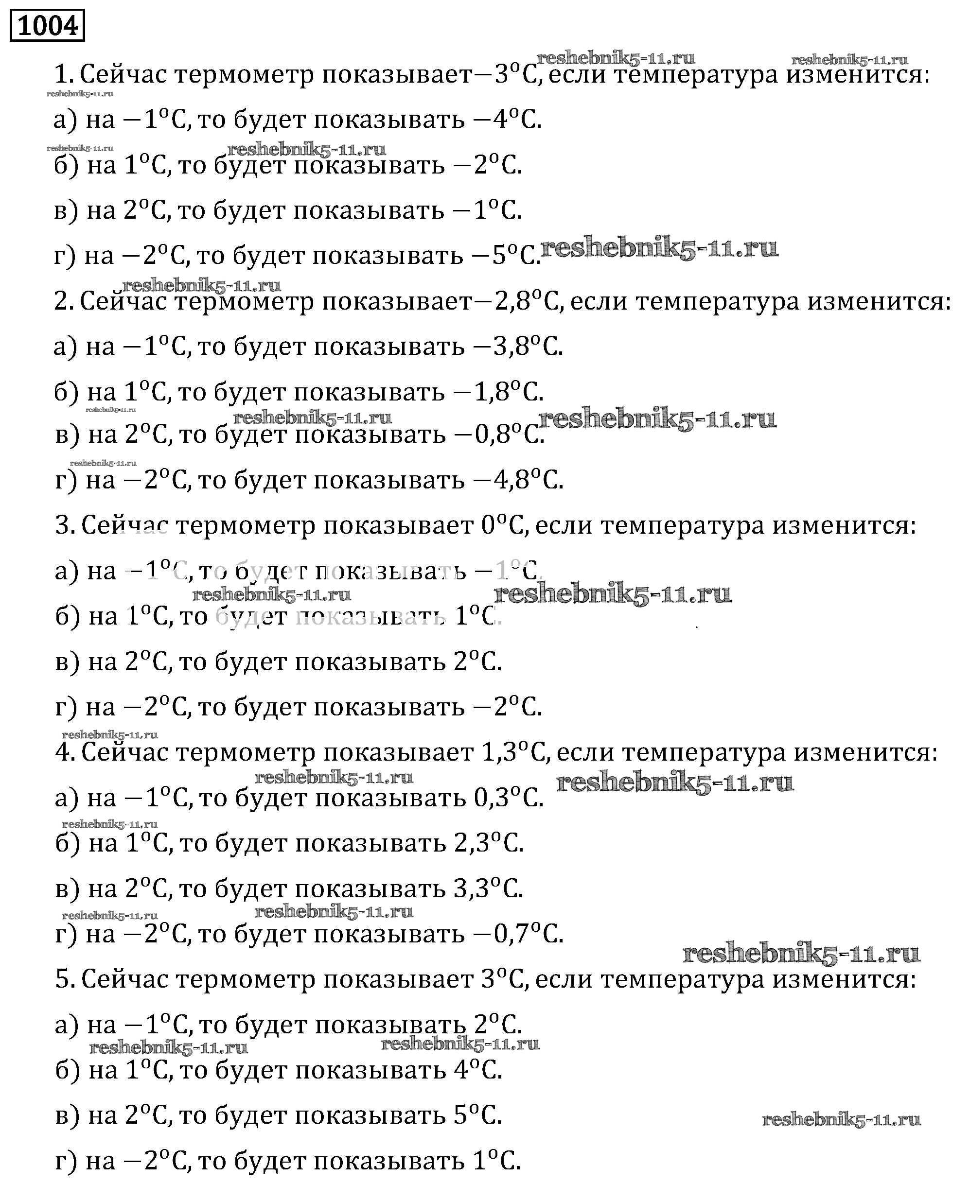 Готовая домашняя работа с ответами по Математике за 6 класс Виленкин, Жохов, Чесноков, Шварцбурд Учебник Мнемозина 2014 ФГОС - §5. Положительные и отрицательные числа 1004
