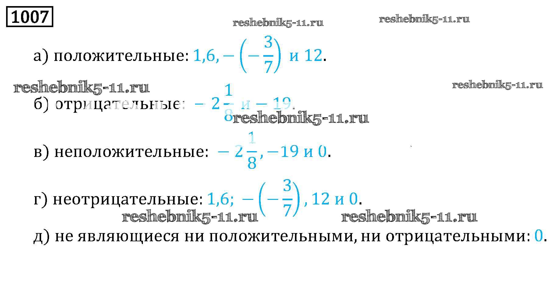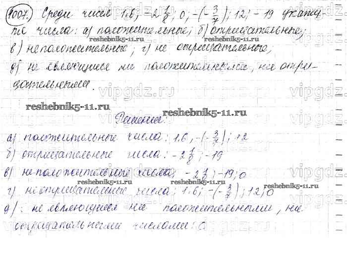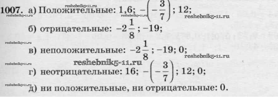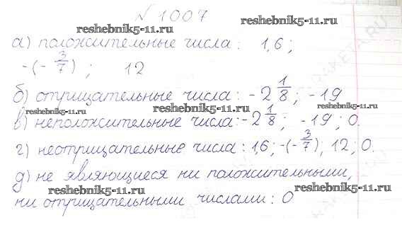 Готовая домашняя работа с ответами по Математике за 6 класс Виленкин, Жохов, Чесноков, Шварцбурд Учебник Мнемозина 2014 ФГОС - §5. Положительные и отрицательные числа 1007