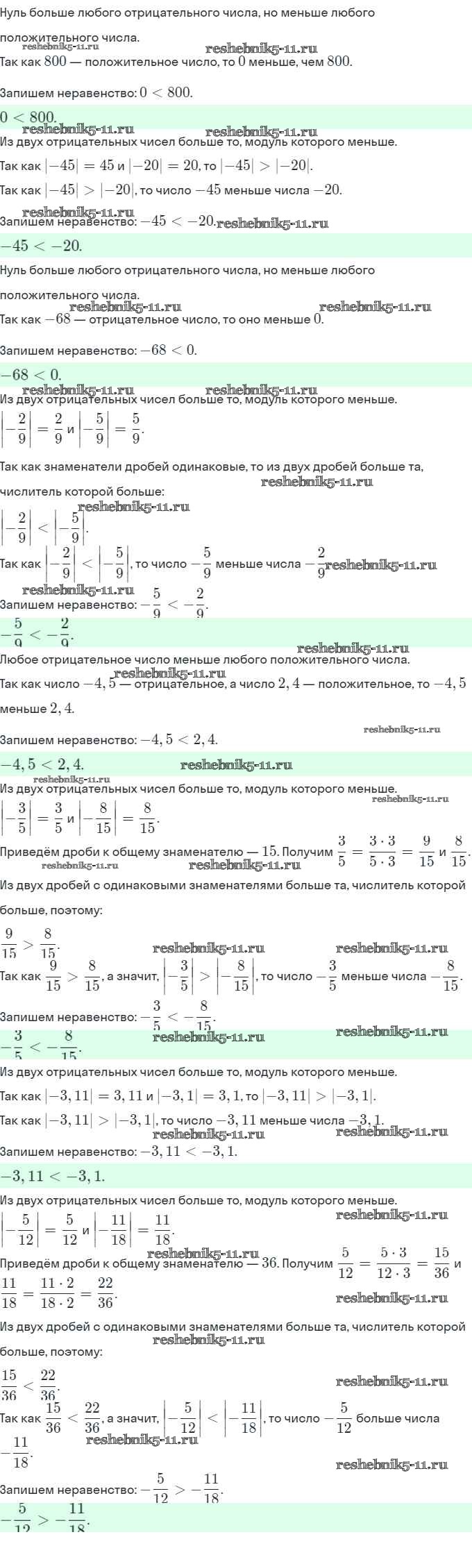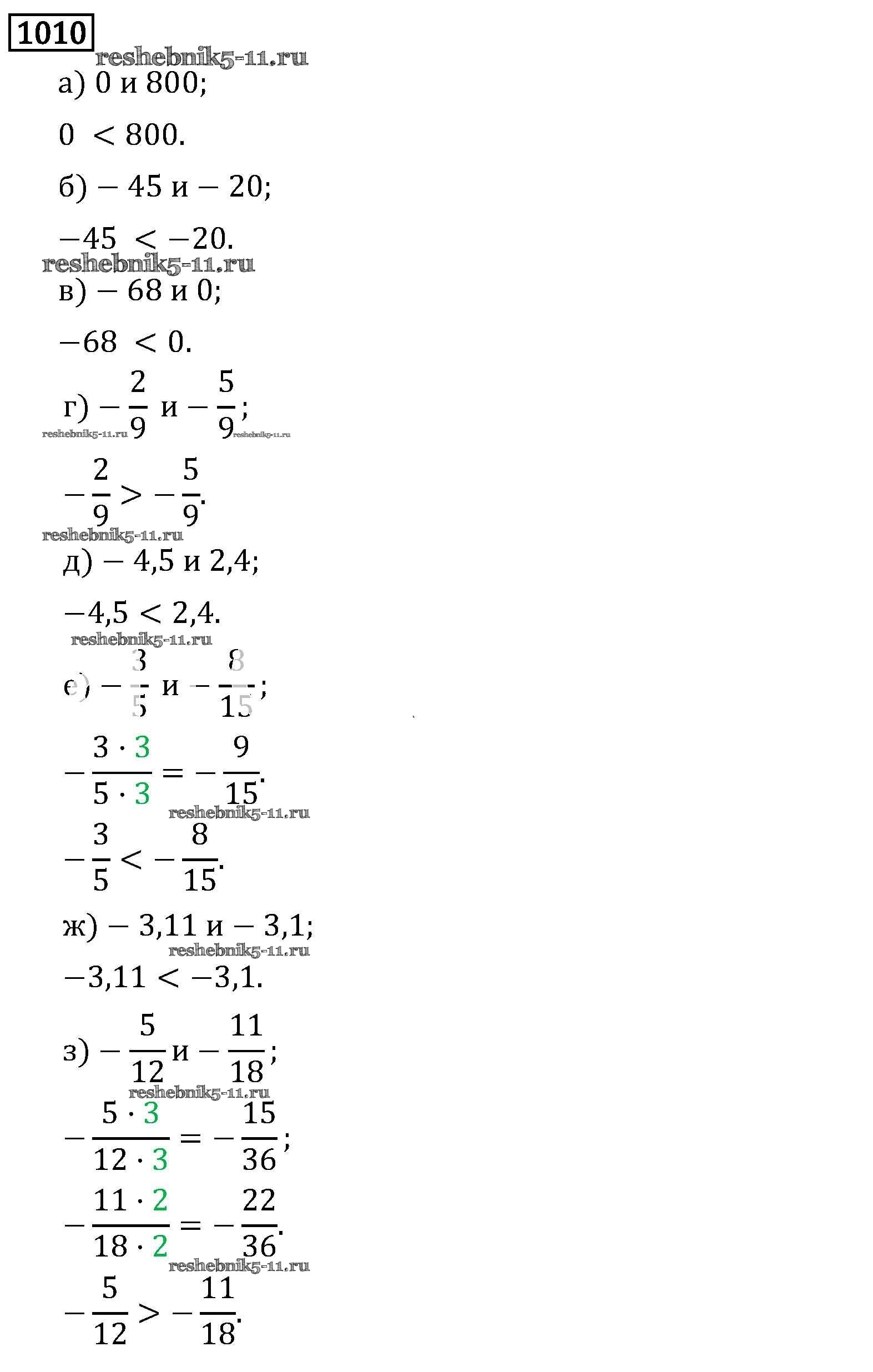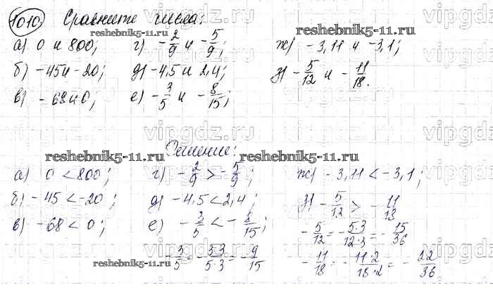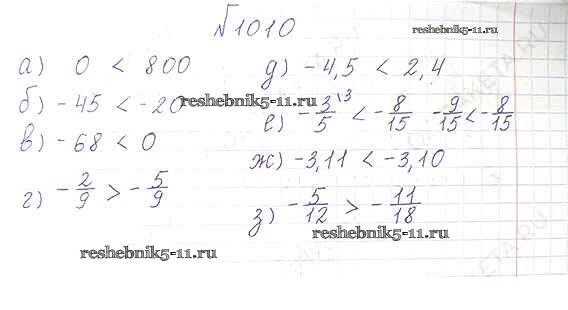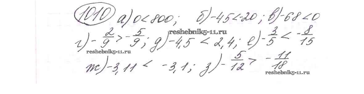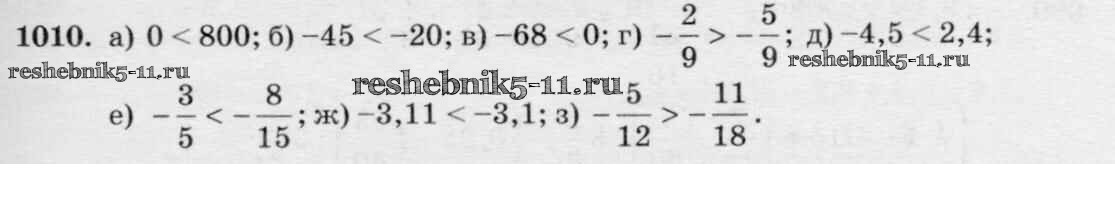 Готовая домашняя работа с ответами по Математике за 6 класс Виленкин, Жохов, Чесноков, Шварцбурд Учебник Мнемозина 2014 ФГОС - §5. Положительные и отрицательные числа 1010