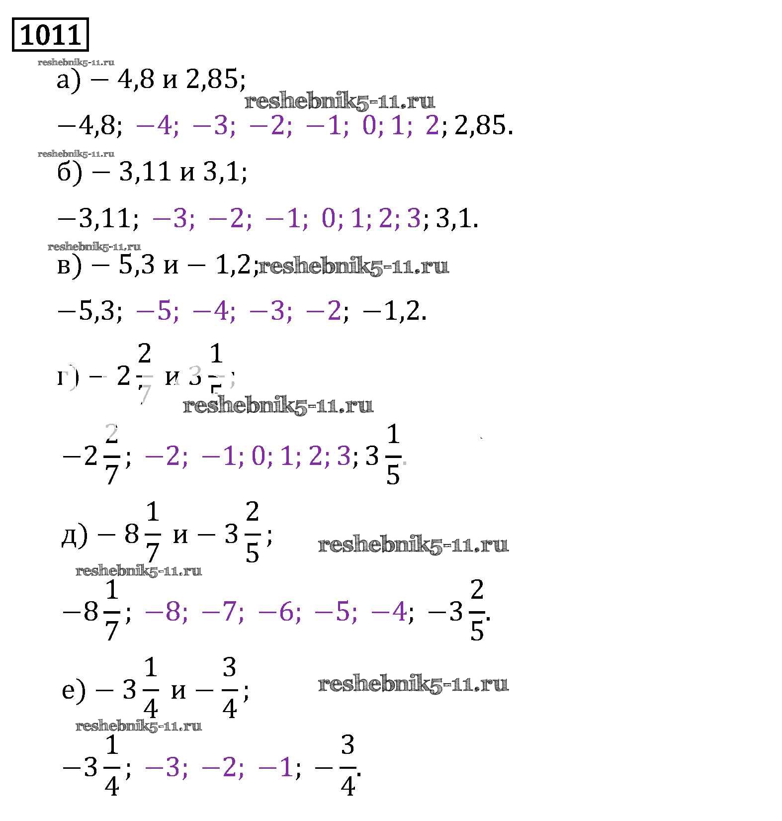 Готовая домашняя работа с ответами по Математике за 6 класс Виленкин, Жохов, Чесноков, Шварцбурд Учебник Мнемозина 2014 ФГОС - §5. Положительные и отрицательные числа 1011
