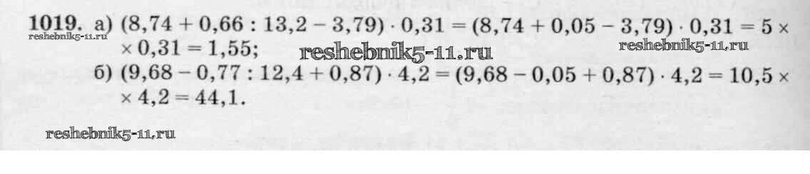 Готовая домашняя работа с ответами по Математике за 6 класс Виленкин, Жохов, Чесноков, Шварцбурд Учебник Мнемозина 2014 ФГОС - §5. Положительные и отрицательные числа 1019