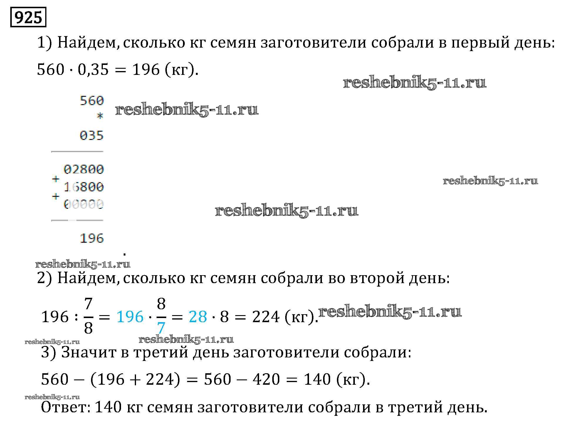 Математика за 6 класс Виленкин Учебник Мнемозина §5 925