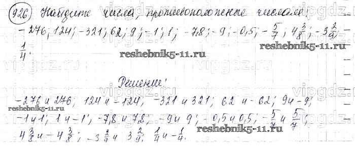 Готовая домашняя работа с ответами по Математике за 6 класс Виленкин, Жохов, Чесноков, Шварцбурд Учебник Мнемозина 2014 ФГОС - §5. Положительные и отрицательные числа 926