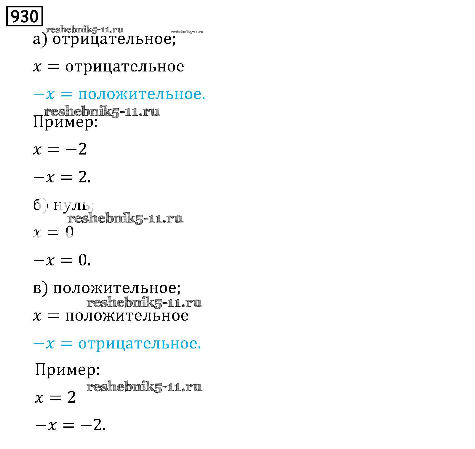 Готовая домашняя работа с ответами по Математике за 6 класс Виленкин, Жохов, Чесноков, Шварцбурд Учебник Мнемозина 2014 ФГОС - §5. Положительные и отрицательные числа 930