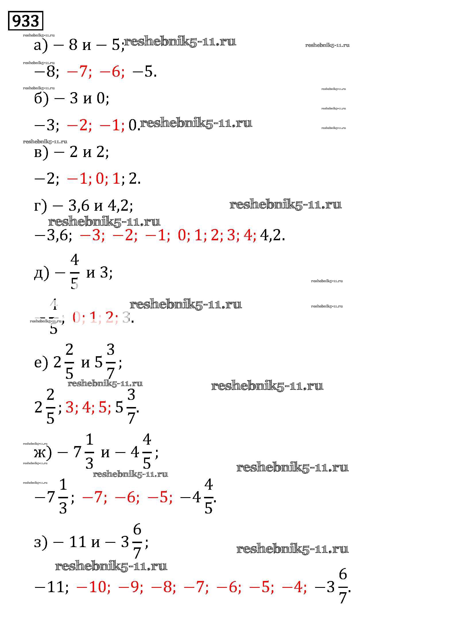 Готовая домашняя работа с ответами по Математике за 6 класс Виленкин, Жохов, Чесноков, Шварцбурд Учебник Мнемозина 2014 ФГОС - §5. Положительные и отрицательные числа 933