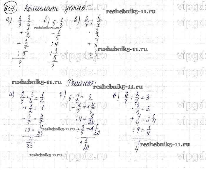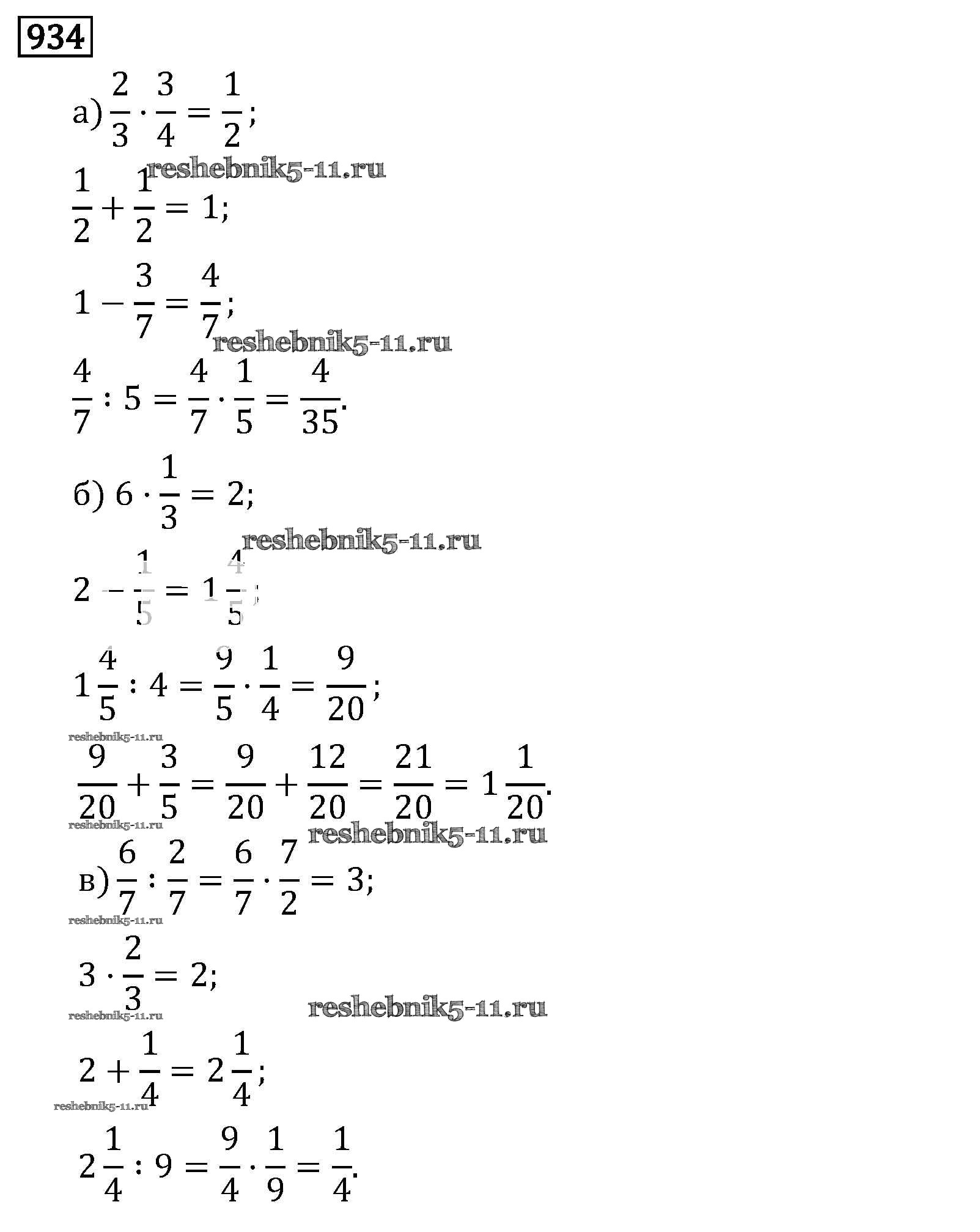 Готовая домашняя работа с ответами по Математике за 6 класс Виленкин, Жохов, Чесноков, Шварцбурд Учебник Мнемозина 2014 ФГОС - §5. Положительные и отрицательные числа 934