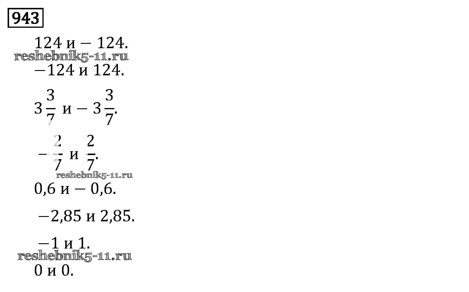 Готовая домашняя работа с ответами по Математике за 6 класс Виленкин, Жохов, Чесноков, Шварцбурд Учебник Мнемозина 2014 ФГОС - §5. Положительные и отрицательные числа 943