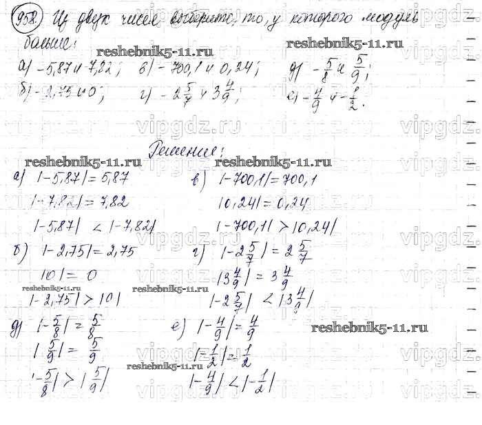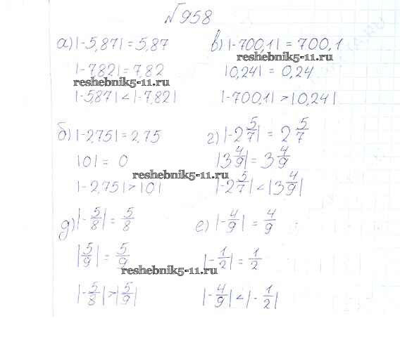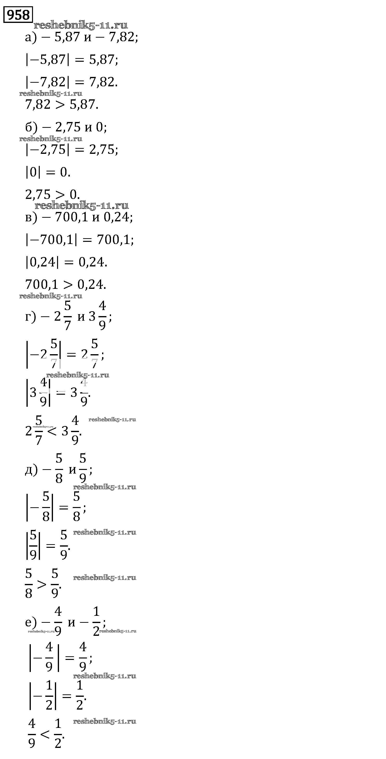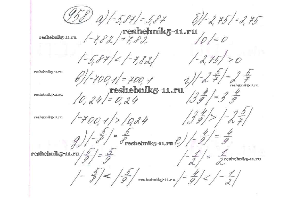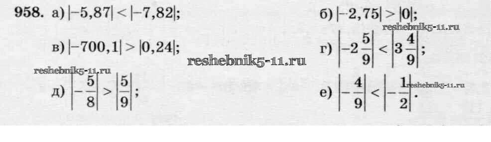 Готовая домашняя работа с ответами по Математике за 6 класс Виленкин, Жохов, Чесноков, Шварцбурд Учебник Мнемозина 2014 ФГОС - §5. Положительные и отрицательные числа 958