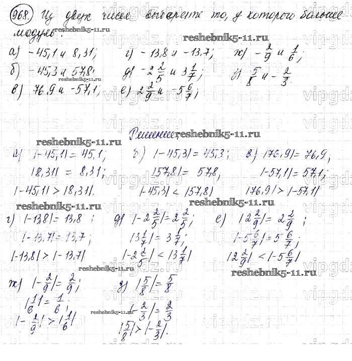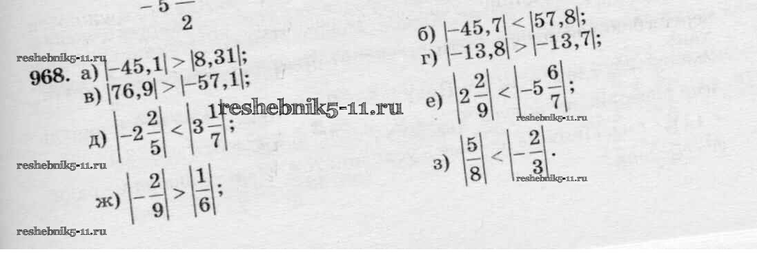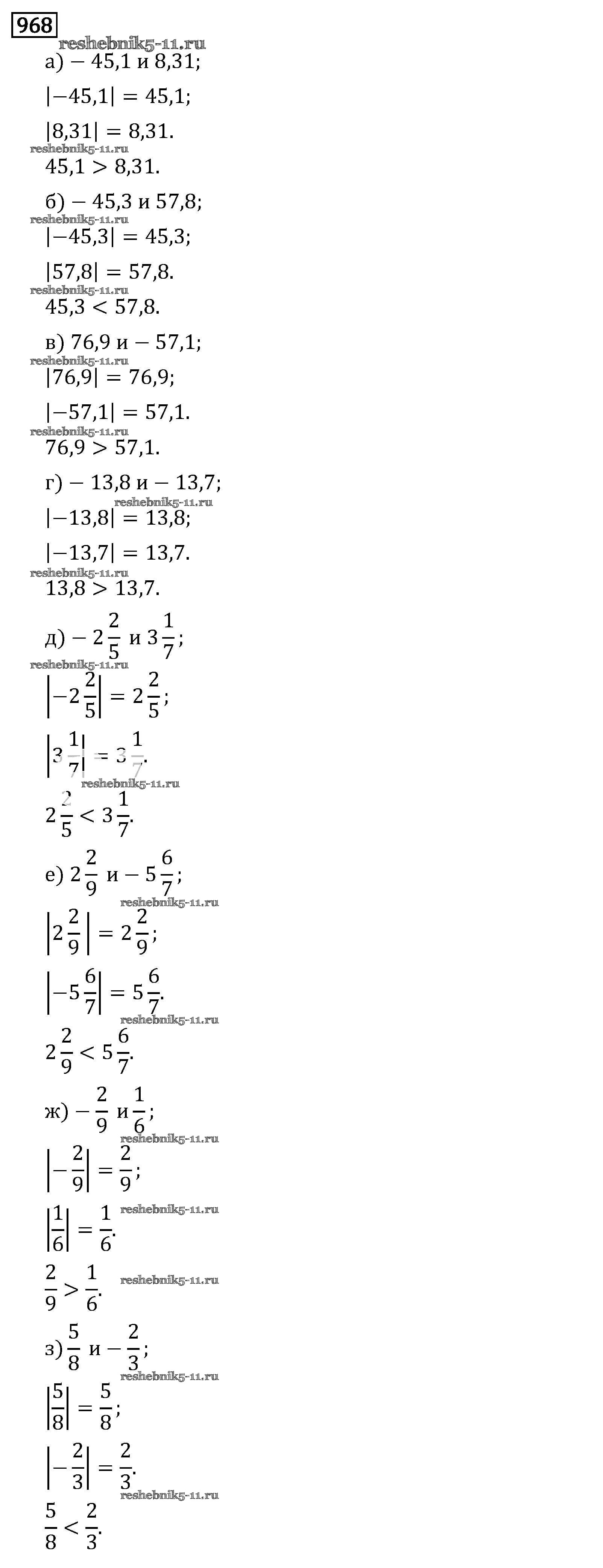 Готовая домашняя работа с ответами по Математике за 6 класс Виленкин, Жохов, Чесноков, Шварцбурд Учебник Мнемозина 2014 ФГОС - §5. Положительные и отрицательные числа 968