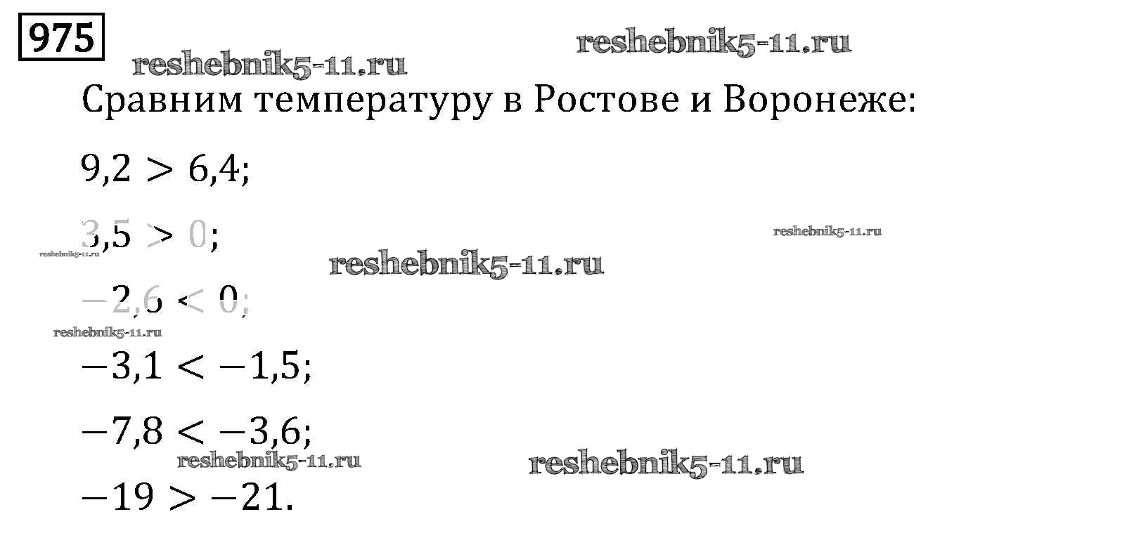 Готовая домашняя работа с ответами по Математике за 6 класс Виленкин, Жохов, Чесноков, Шварцбурд Учебник Мнемозина 2014 ФГОС - §5. Положительные и отрицательные числа 975