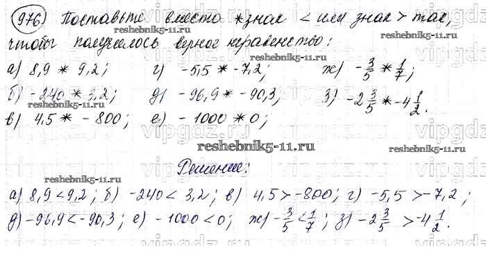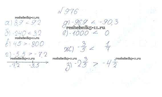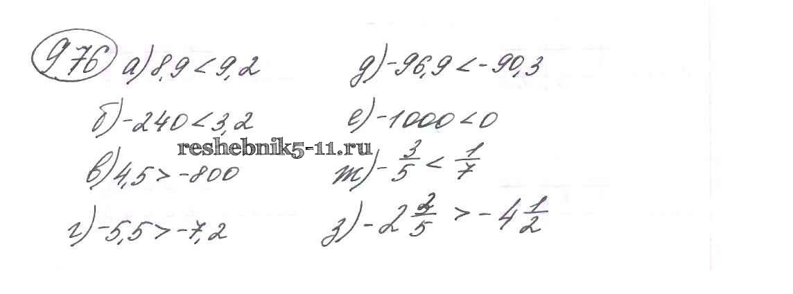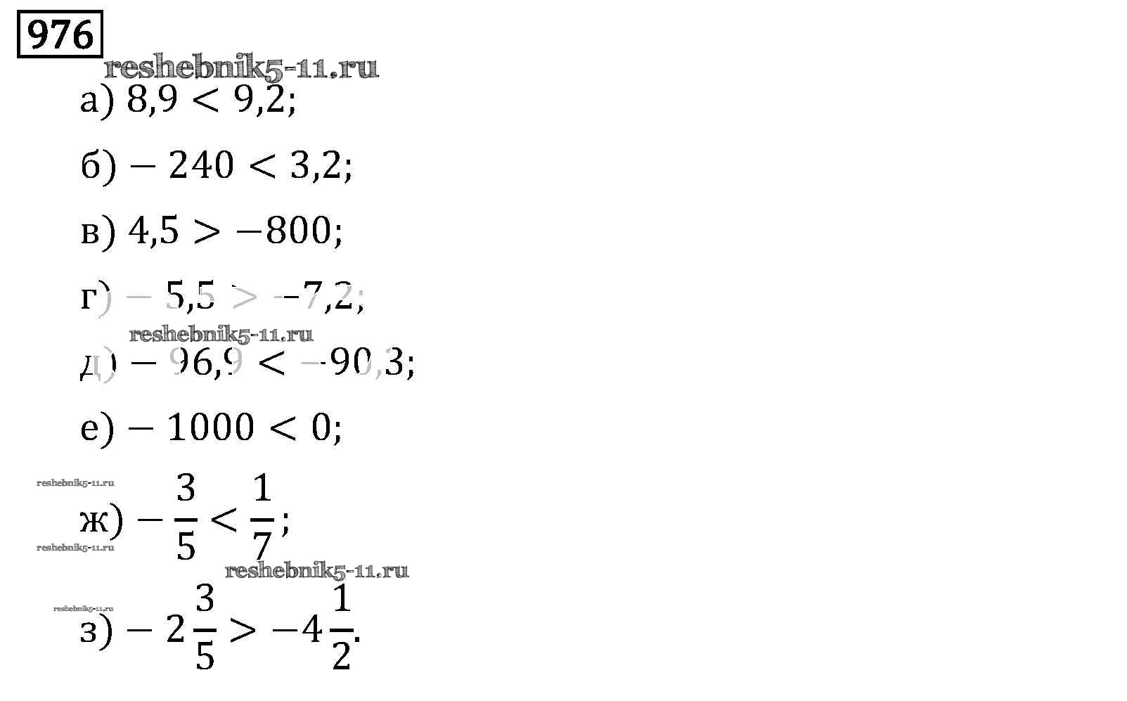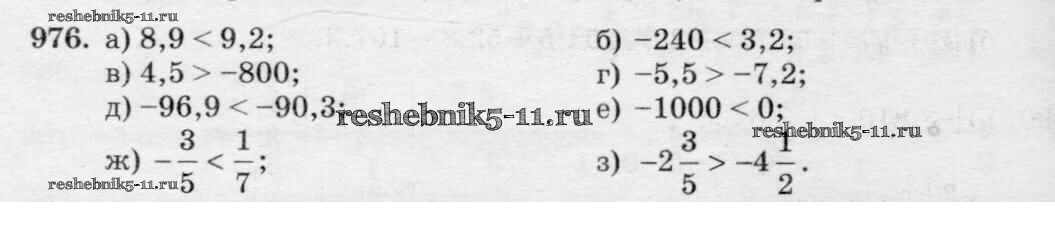 Готовая домашняя работа с ответами по Математике за 6 класс Виленкин, Жохов, Чесноков, Шварцбурд Учебник Мнемозина 2014 ФГОС - §5. Положительные и отрицательные числа 976
