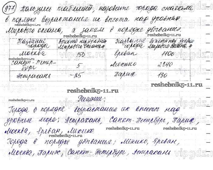 Готовая домашняя работа с ответами по Математике за 6 класс Виленкин, Жохов, Чесноков, Шварцбурд Учебник Мнемозина 2014 ФГОС - §5. Положительные и отрицательные числа 977