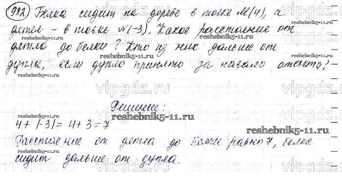 Готовая домашняя работа с ответами по Математике за 6 класс Виленкин, Жохов, Чесноков, Шварцбурд Учебник Мнемозина 2014 ФГОС - §5. Положительные и отрицательные числа 982
