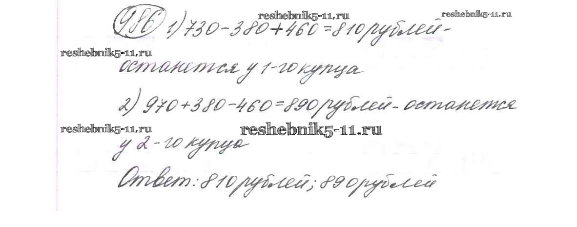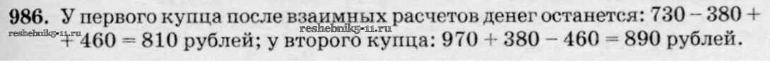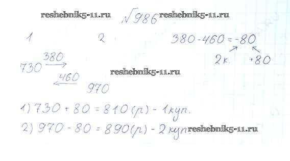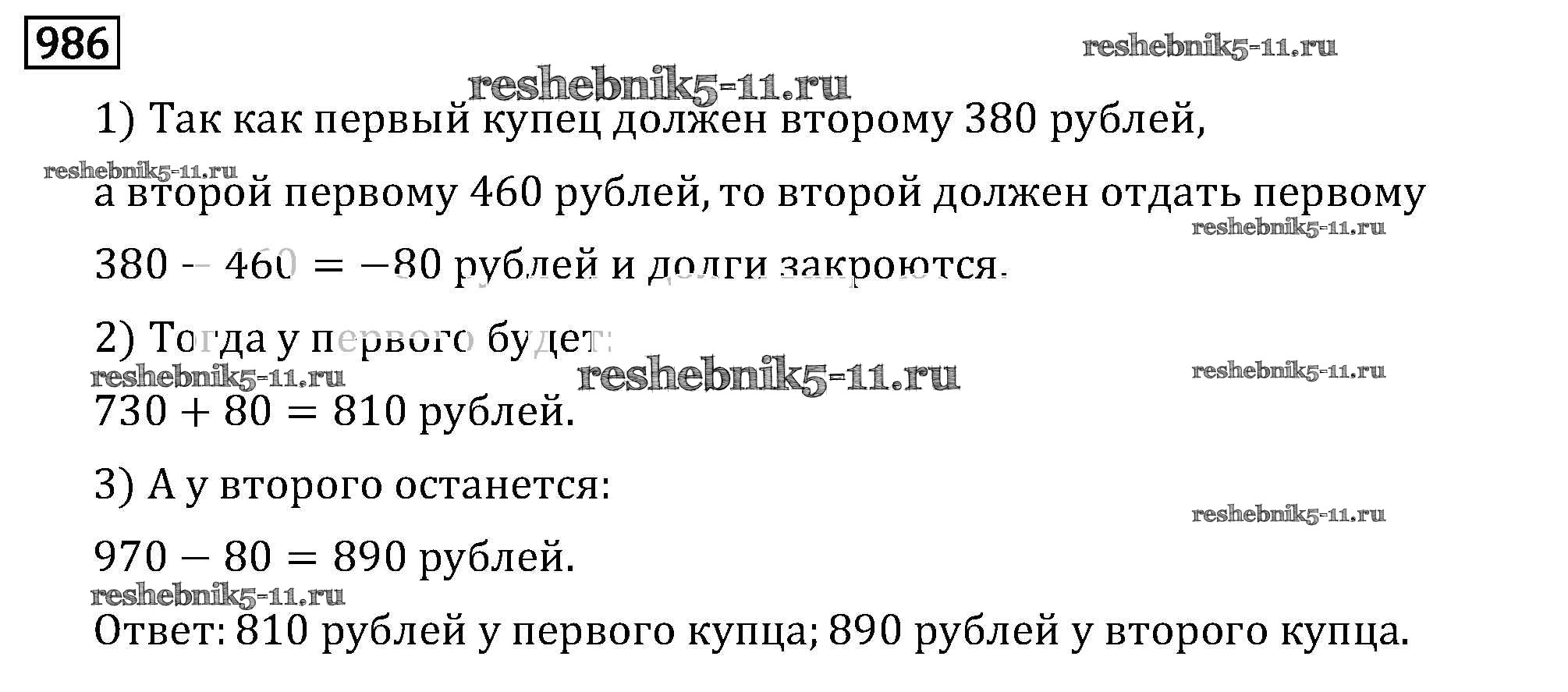 Готовая домашняя работа с ответами по Математике за 6 класс Виленкин, Жохов, Чесноков, Шварцбурд Учебник Мнемозина 2014 ФГОС - §5. Положительные и отрицательные числа 986