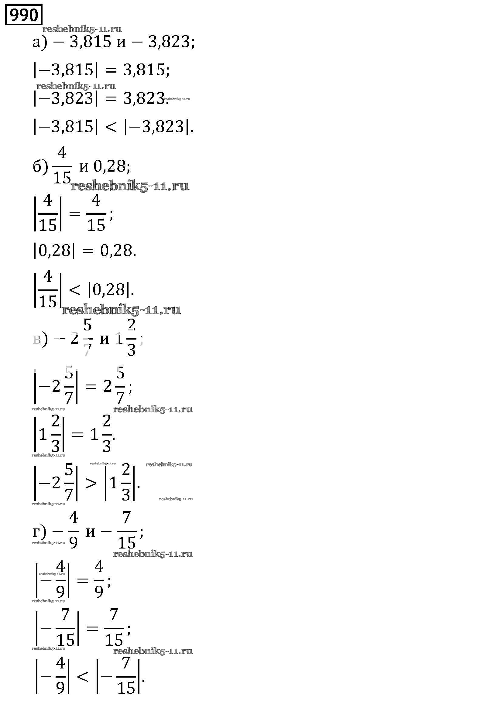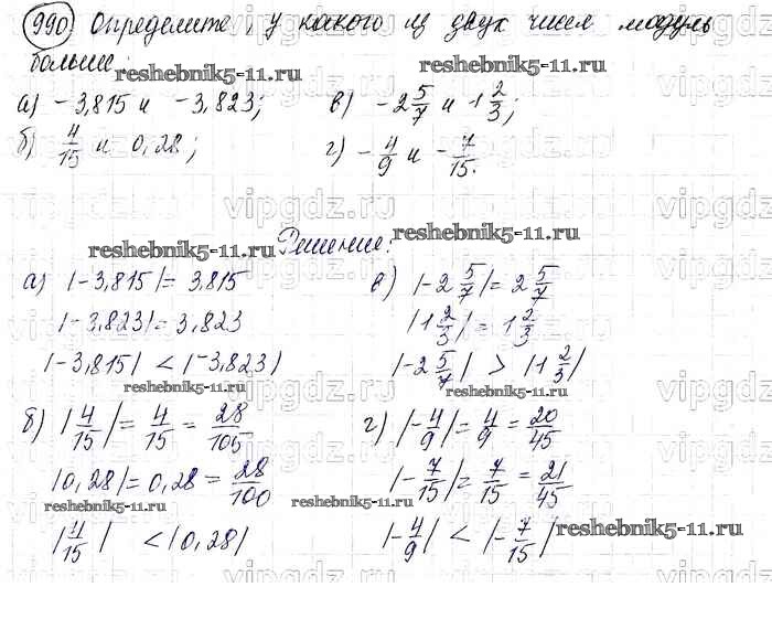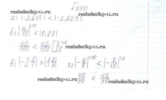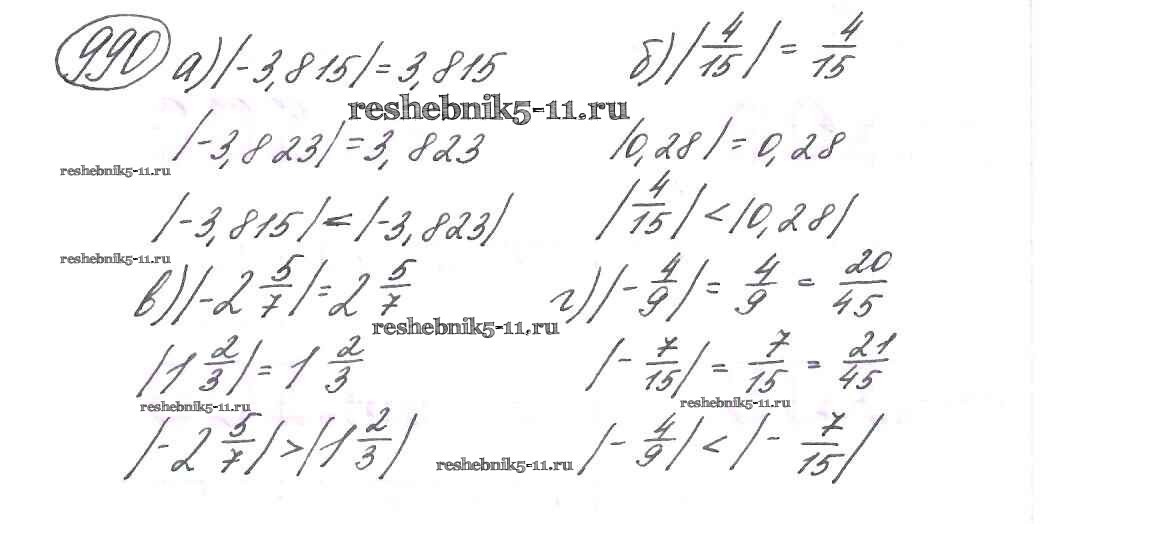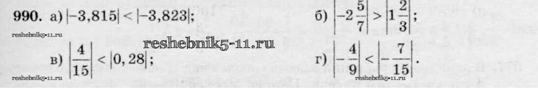 Готовая домашняя работа с ответами по Математике за 6 класс Виленкин, Жохов, Чесноков, Шварцбурд Учебник Мнемозина 2014 ФГОС - §5. Положительные и отрицательные числа 990