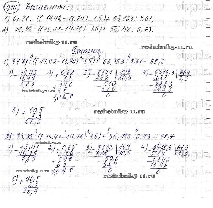 Готовая домашняя работа с ответами по Математике за 6 класс Виленкин, Жохов, Чесноков, Шварцбурд Учебник Мнемозина 2014 ФГОС - §5. Положительные и отрицательные числа 994