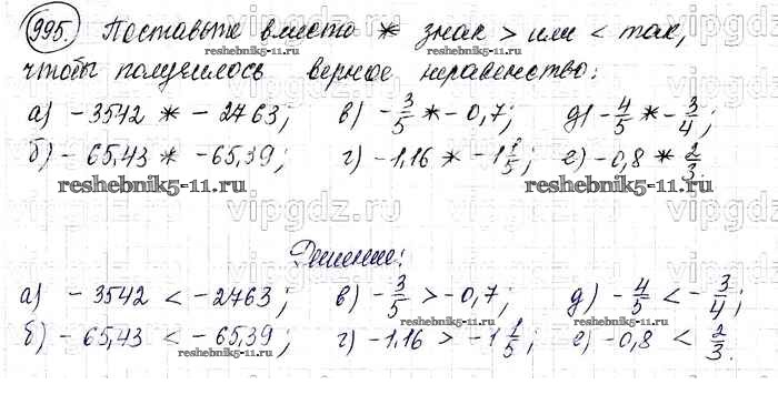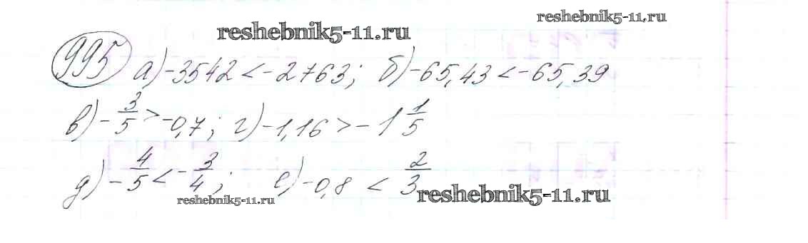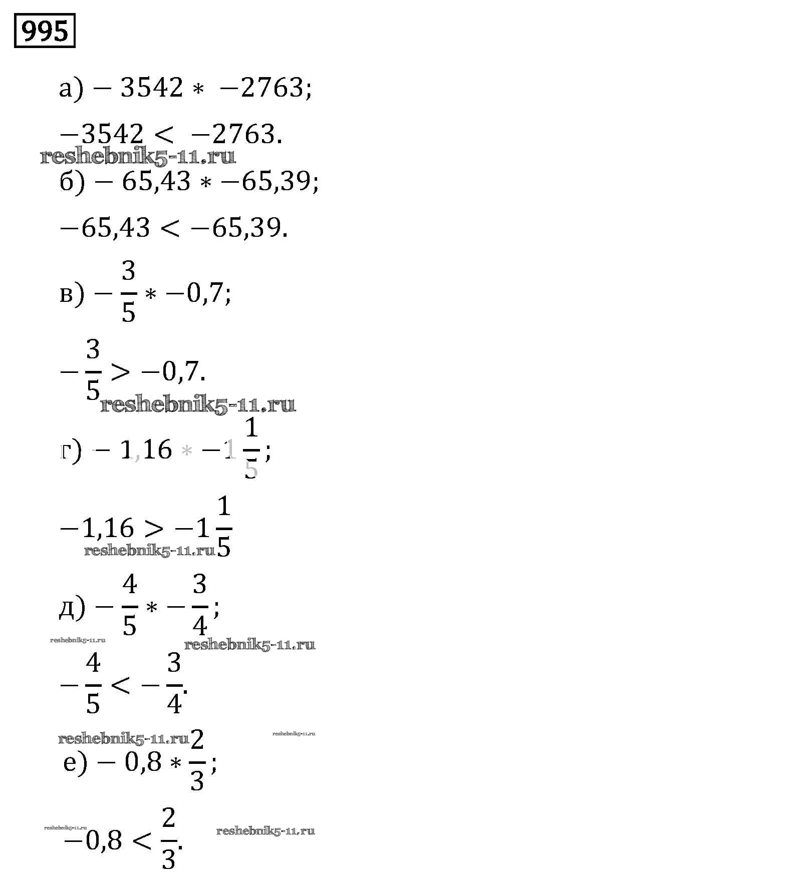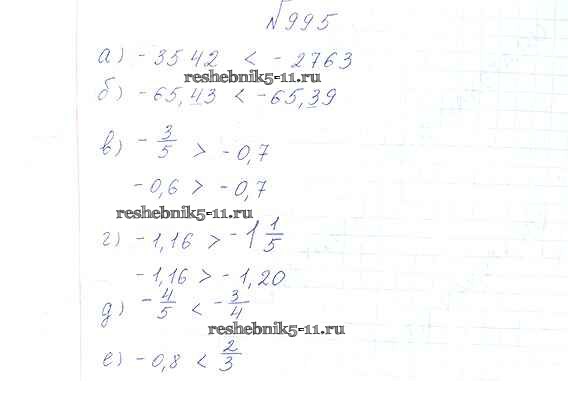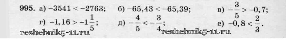 Готовая домашняя работа с ответами по Математике за 6 класс Виленкин, Жохов, Чесноков, Шварцбурд Учебник Мнемозина 2014 ФГОС - §5. Положительные и отрицательные числа 995