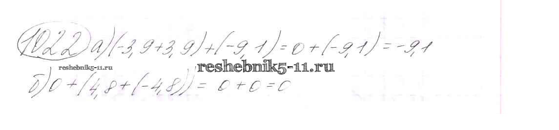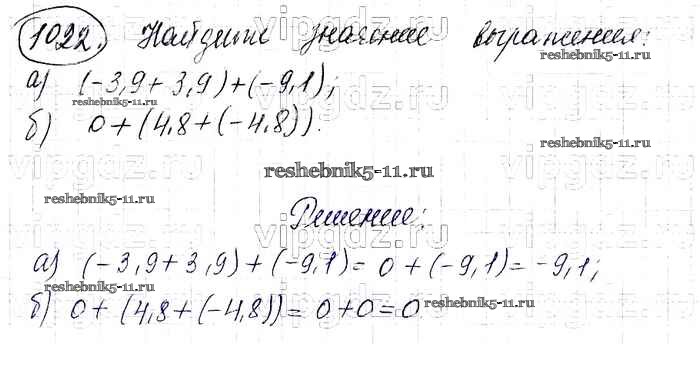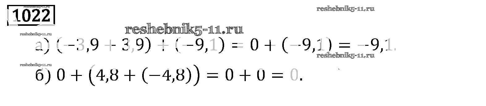 Готовая домашняя работа с ответами по Математике за 6 класс Виленкин, Жохов, Чесноков, Шварцбурд Учебник Мнемозина 2014 ФГОС - §6. Сложение и вычитание положительных и отрицательных чисел 1022