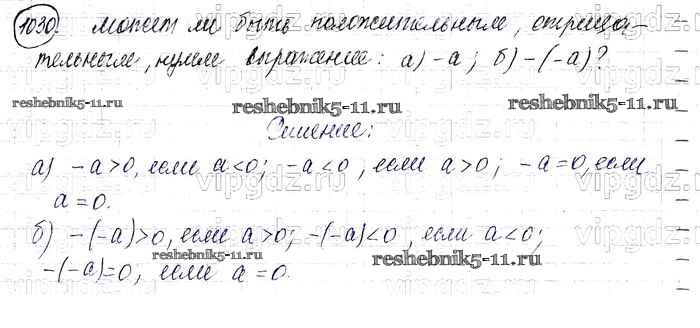 Готовая домашняя работа с ответами по Математике за 6 класс Виленкин, Жохов, Чесноков, Шварцбурд Учебник Мнемозина 2014 ФГОС - §6. Сложение и вычитание положительных и отрицательных чисел 1030