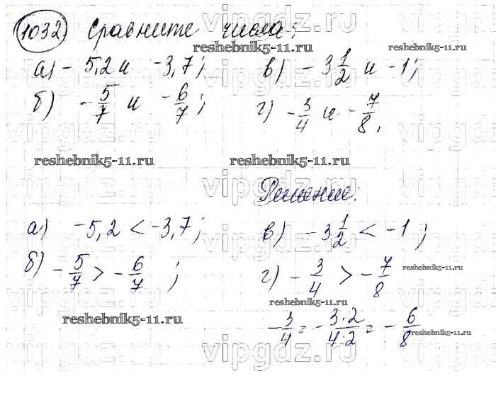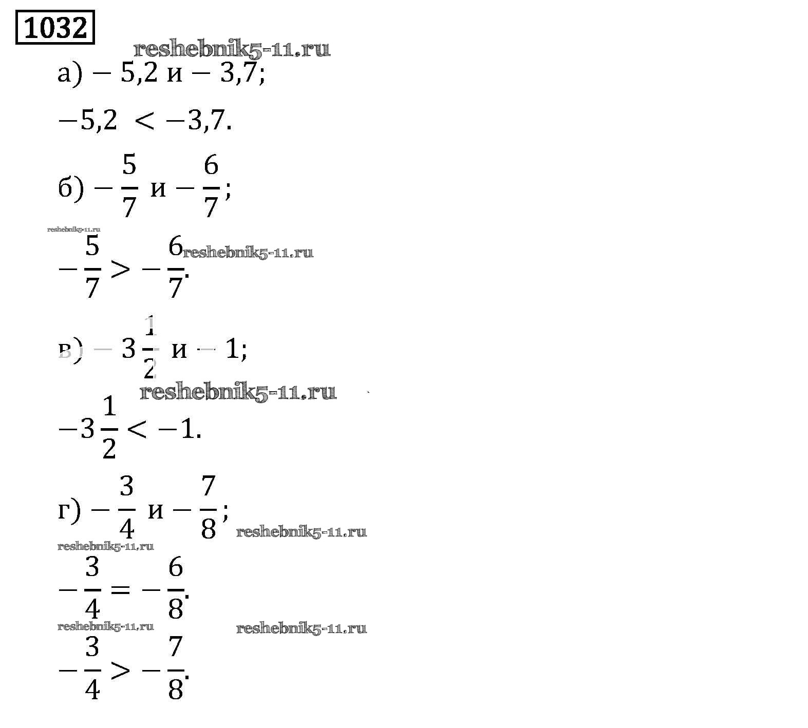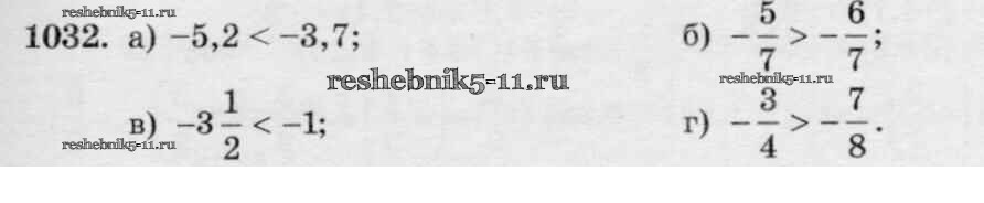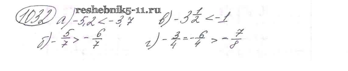 Готовая домашняя работа с ответами по Математике за 6 класс Виленкин, Жохов, Чесноков, Шварцбурд Учебник Мнемозина 2014 ФГОС - §6. Сложение и вычитание положительных и отрицательных чисел 1032