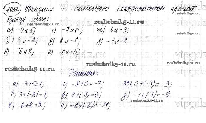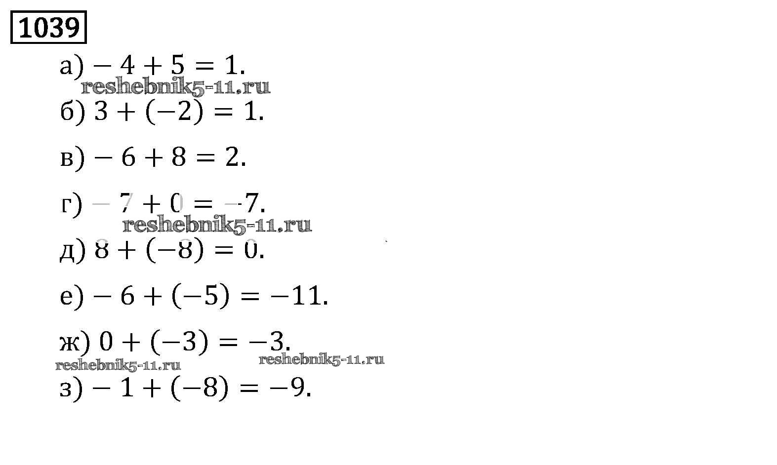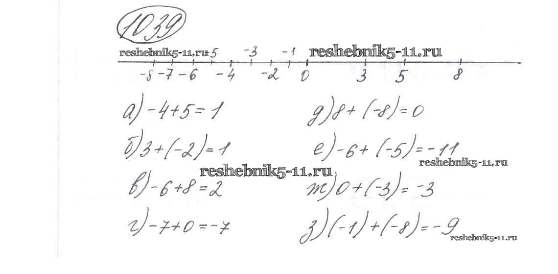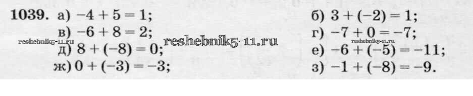 Готовая домашняя работа с ответами по Математике за 6 класс Виленкин, Жохов, Чесноков, Шварцбурд Учебник Мнемозина 2014 ФГОС - §6. Сложение и вычитание положительных и отрицательных чисел 1039