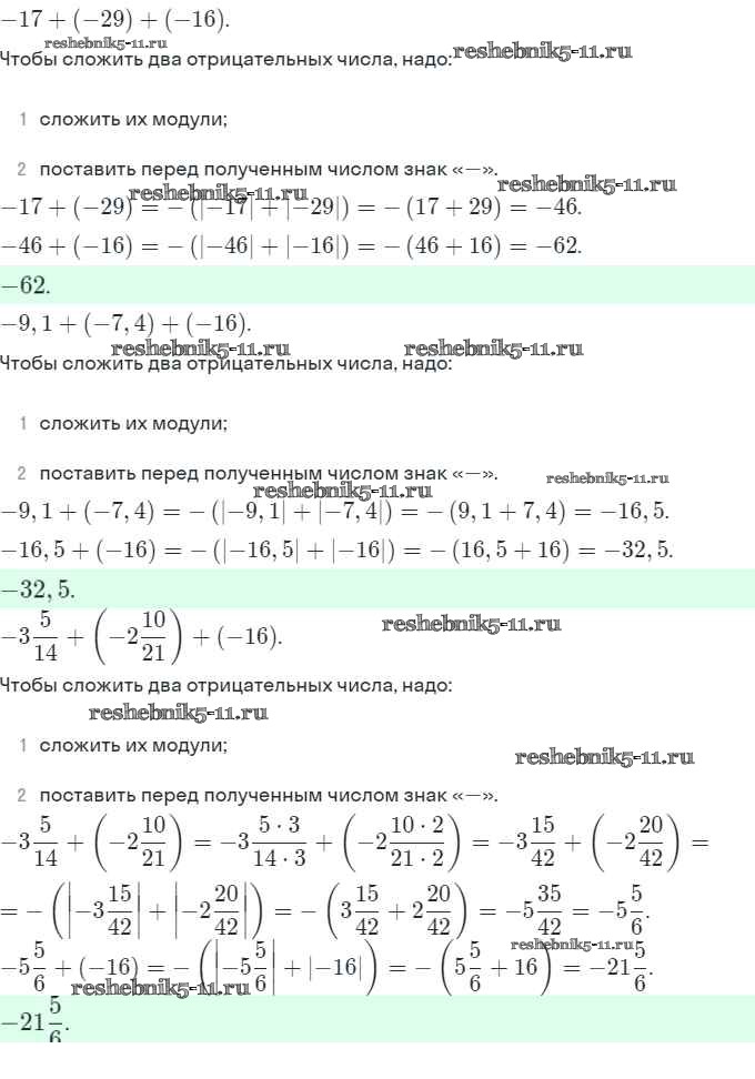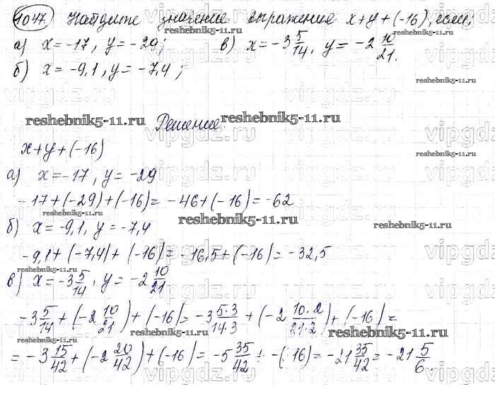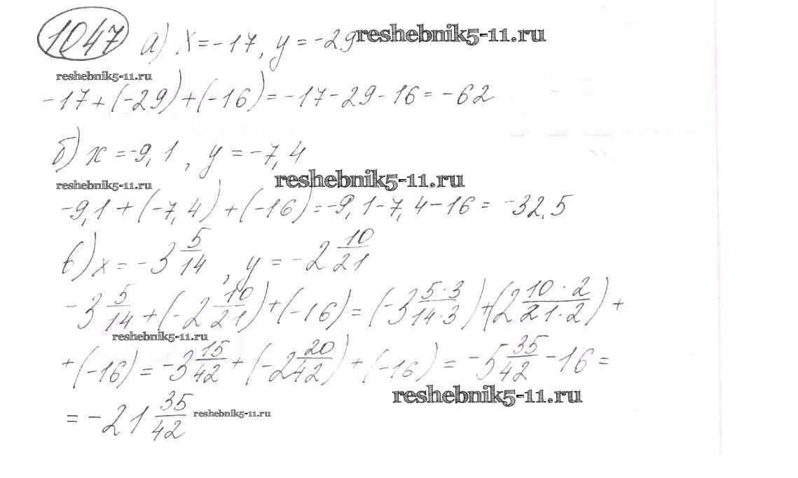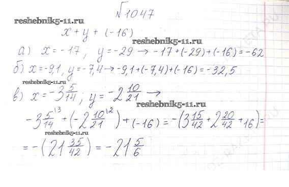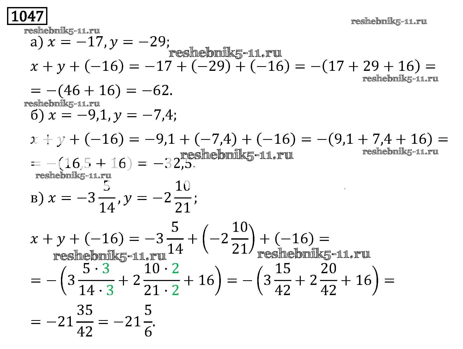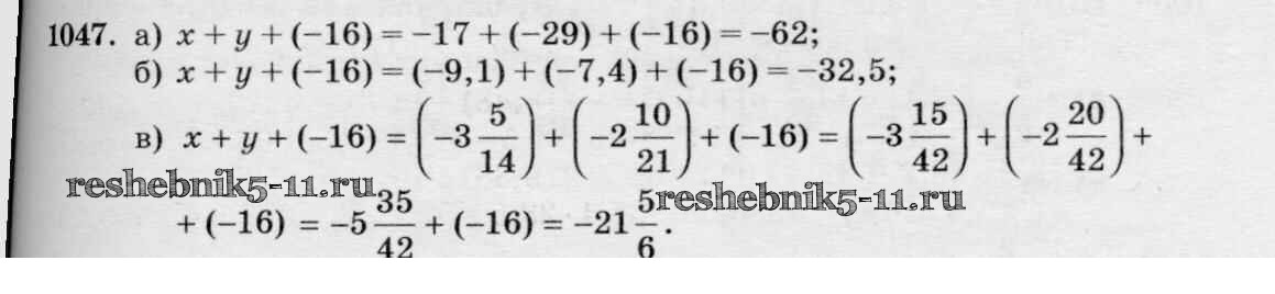 Готовая домашняя работа с ответами по Математике за 6 класс Виленкин, Жохов, Чесноков, Шварцбурд Учебник Мнемозина 2014 ФГОС - §6. Сложение и вычитание положительных и отрицательных чисел 1047