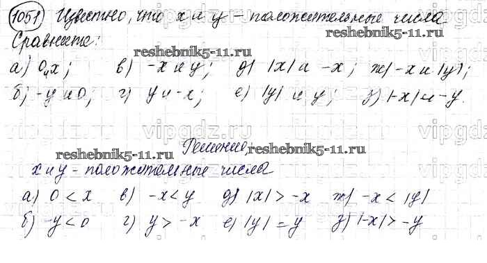 Готовая домашняя работа с ответами по Математике за 6 класс Виленкин, Жохов, Чесноков, Шварцбурд Учебник Мнемозина 2014 ФГОС - §6. Сложение и вычитание положительных и отрицательных чисел 1051