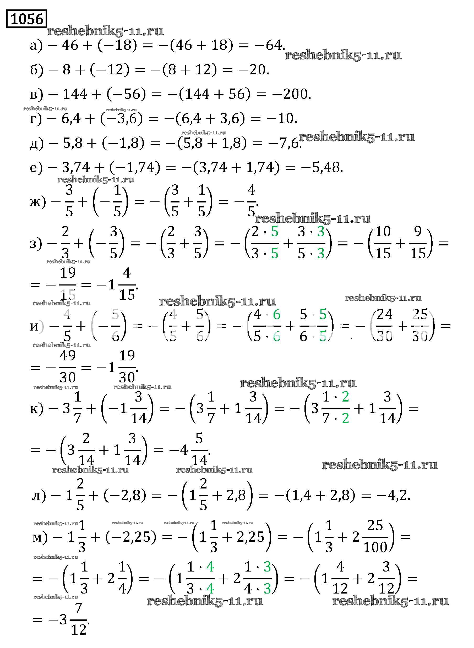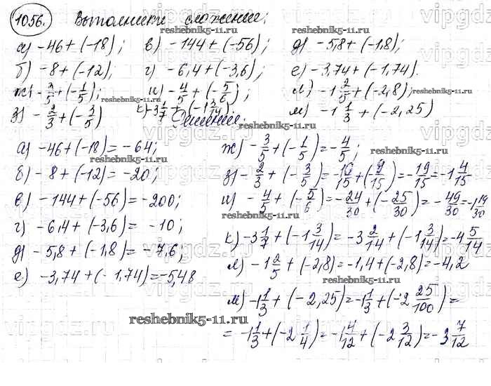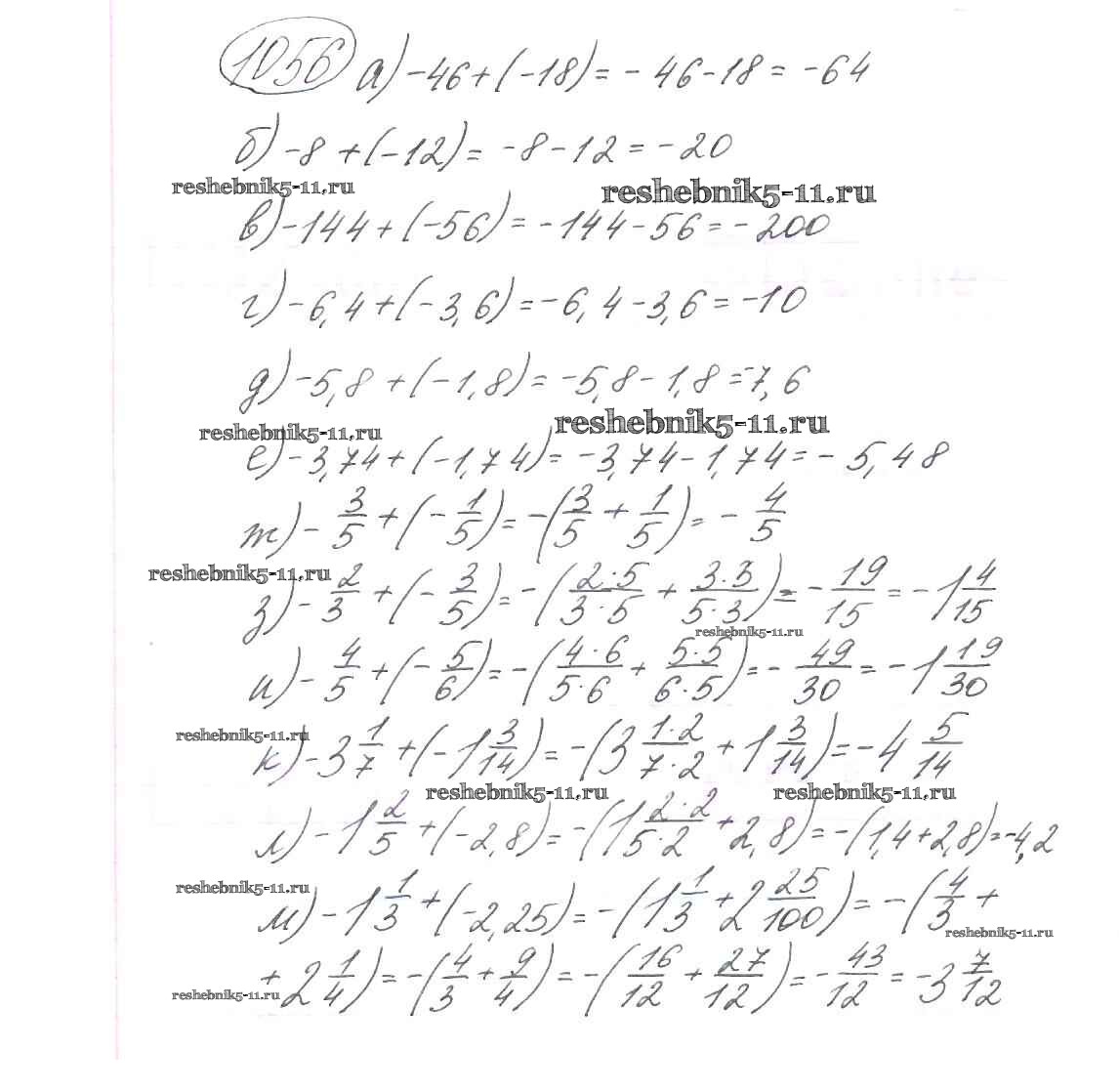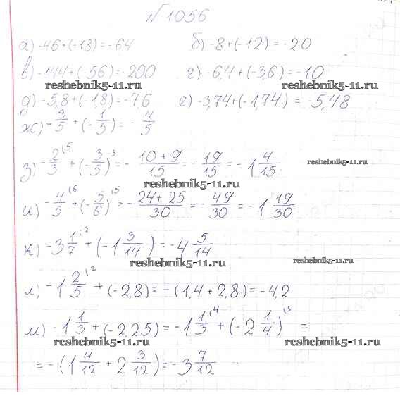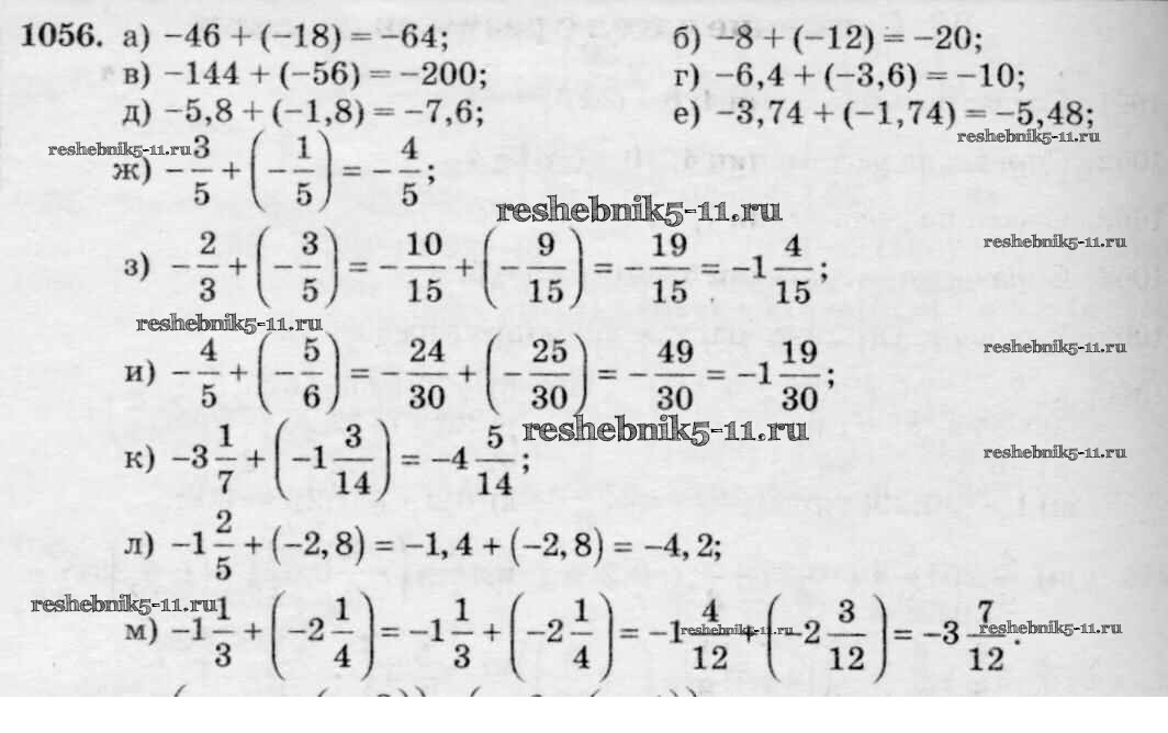 Готовая домашняя работа с ответами по Математике за 6 класс Виленкин, Жохов, Чесноков, Шварцбурд Учебник Мнемозина 2014 ФГОС - §6. Сложение и вычитание положительных и отрицательных чисел 1056