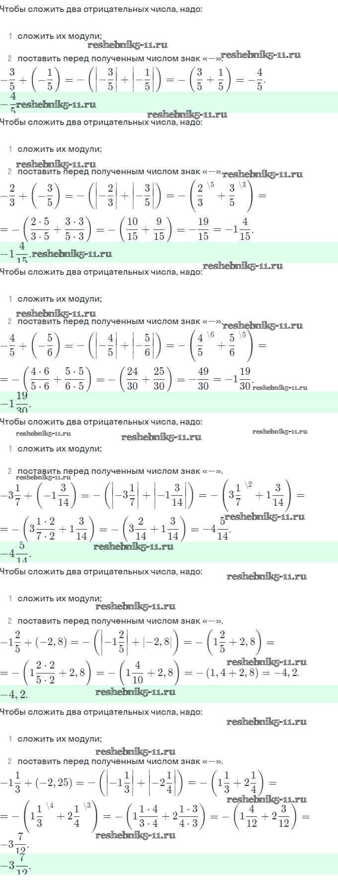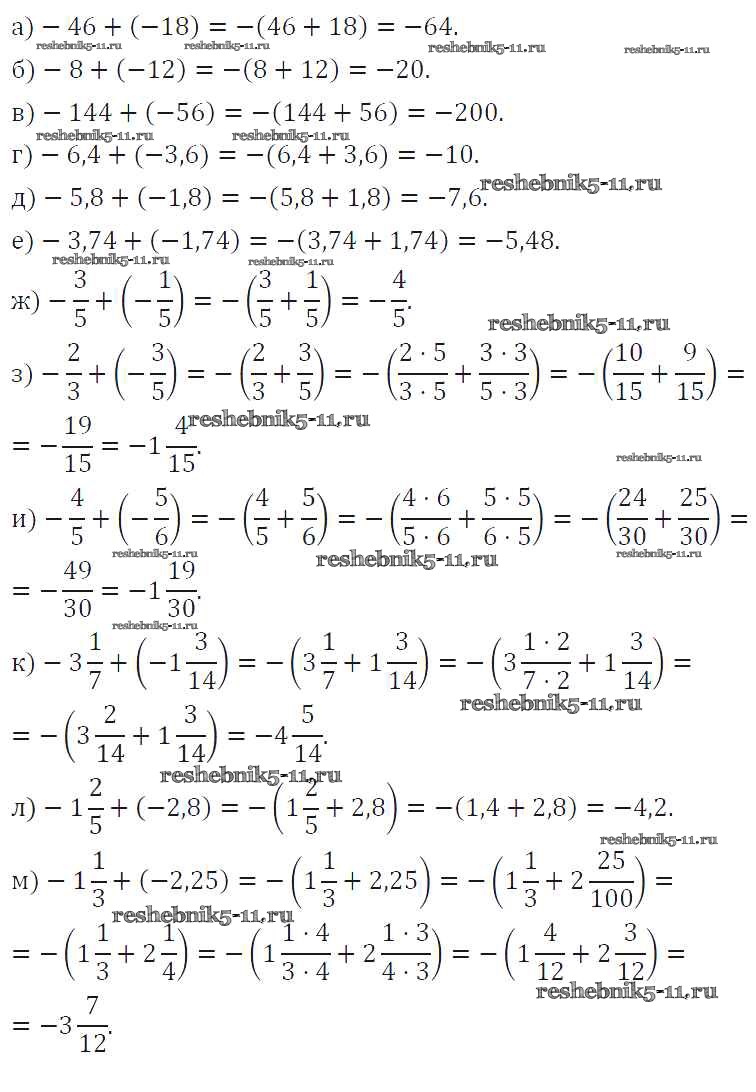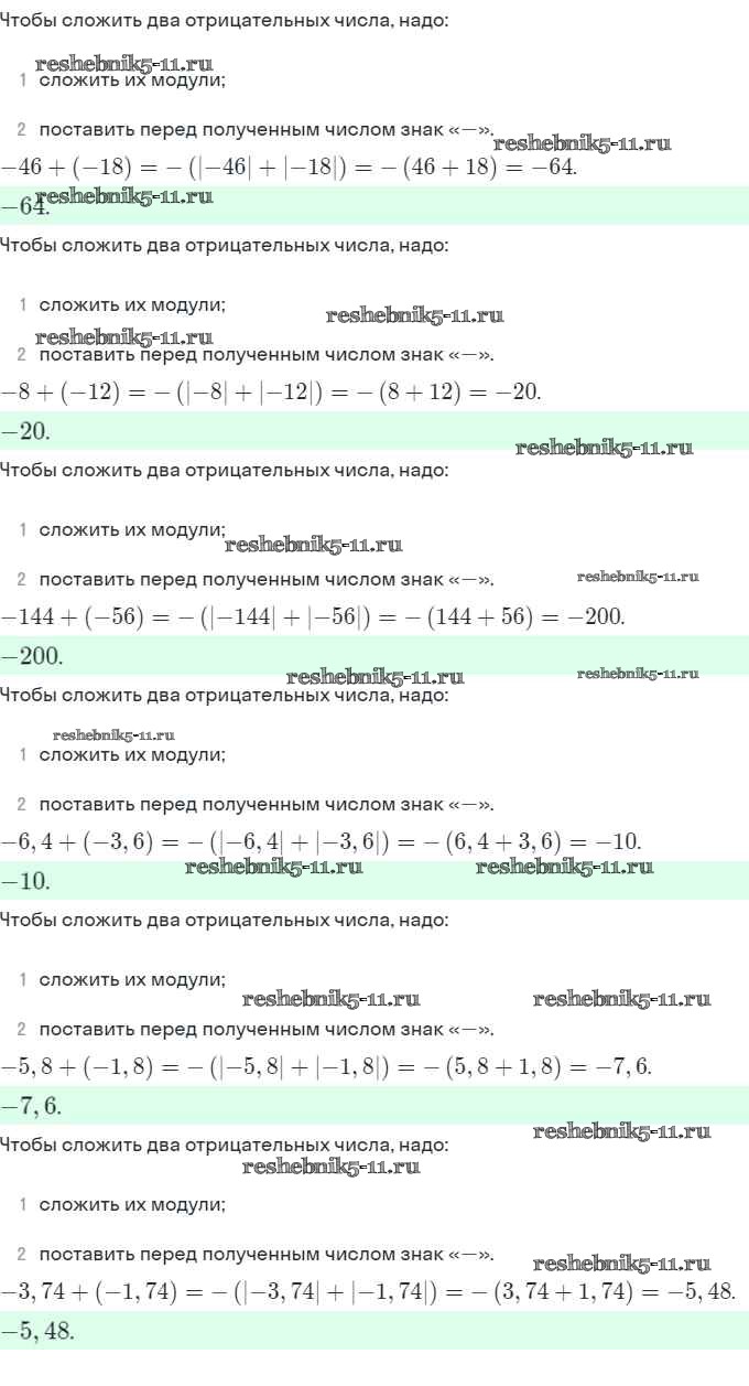 Готовая домашняя работа с ответами по Математике за 6 класс Виленкин, Жохов, Чесноков, Шварцбурд Учебник Мнемозина 2014 ФГОС - §6. Сложение и вычитание положительных и отрицательных чисел 1056