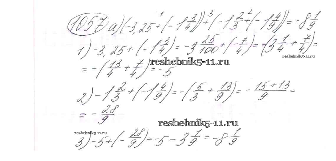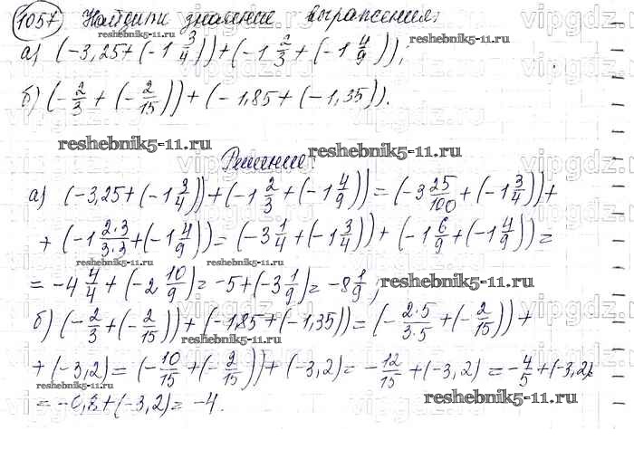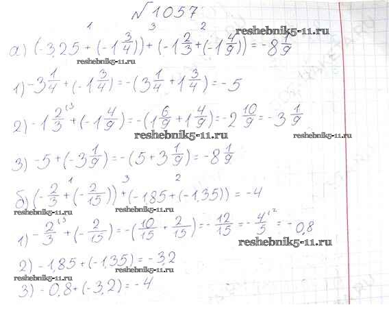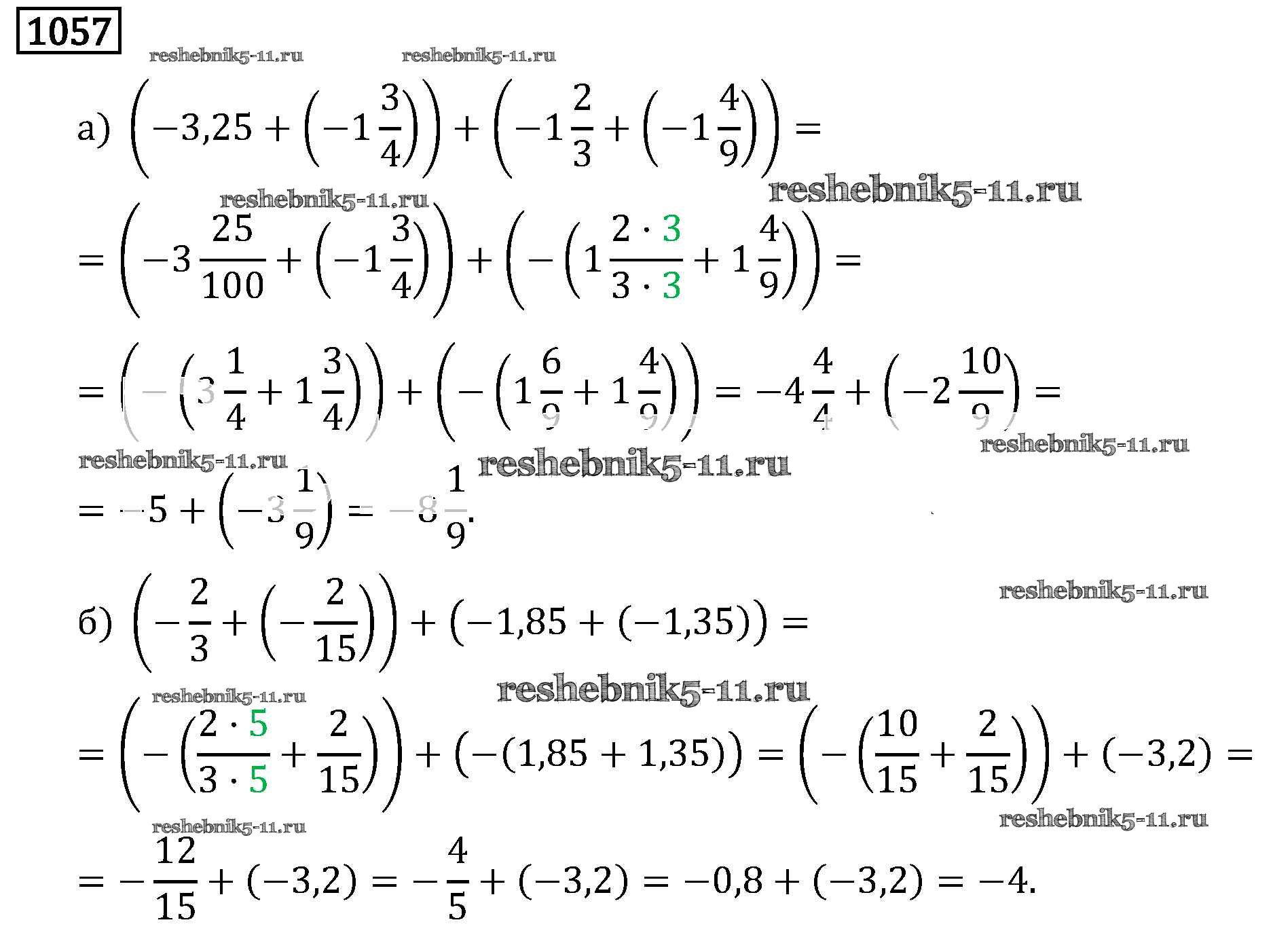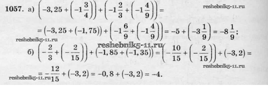 Готовая домашняя работа с ответами по Математике за 6 класс Виленкин, Жохов, Чесноков, Шварцбурд Учебник Мнемозина 2014 ФГОС - §6. Сложение и вычитание положительных и отрицательных чисел 1057