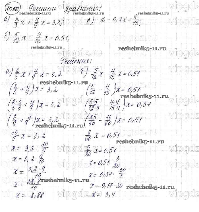 Готовая домашняя работа с ответами по Математике за 6 класс Виленкин, Жохов, Чесноков, Шварцбурд Учебник Мнемозина 2014 ФГОС - §6. Сложение и вычитание положительных и отрицательных чисел 1060