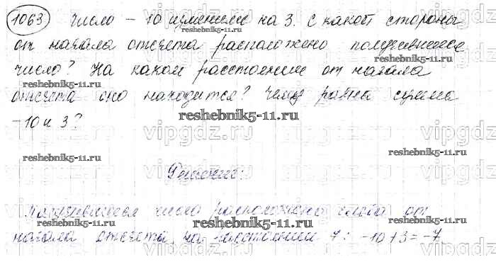 Готовая домашняя работа с ответами по Математике за 6 класс Виленкин, Жохов, Чесноков, Шварцбурд Учебник Мнемозина 2014 ФГОС - §6. Сложение и вычитание положительных и отрицательных чисел 1063