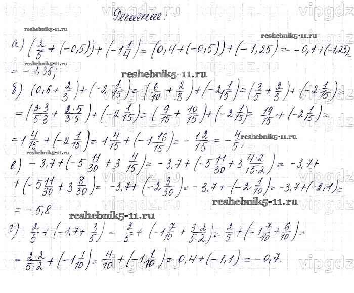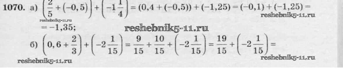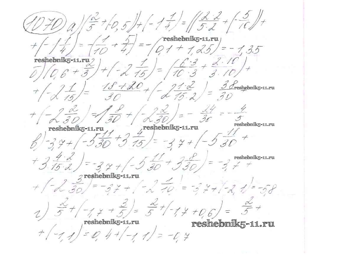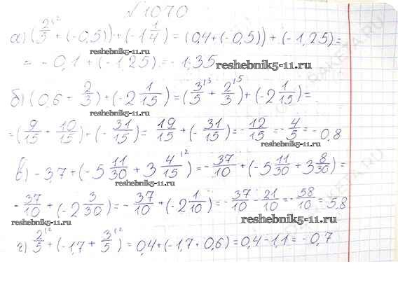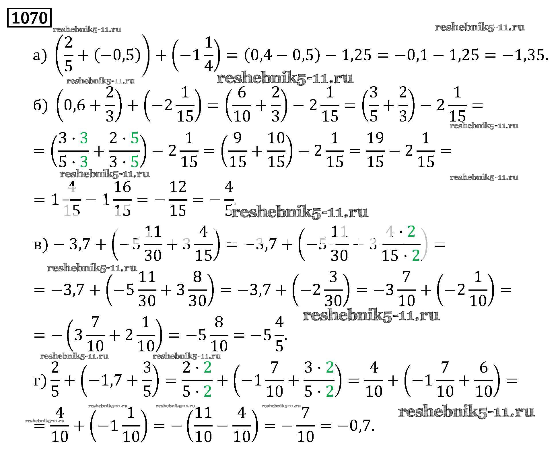 Готовая домашняя работа с ответами по Математике за 6 класс Виленкин, Жохов, Чесноков, Шварцбурд Учебник Мнемозина 2014 ФГОС - §6. Сложение и вычитание положительных и отрицательных чисел 1070