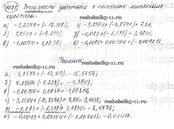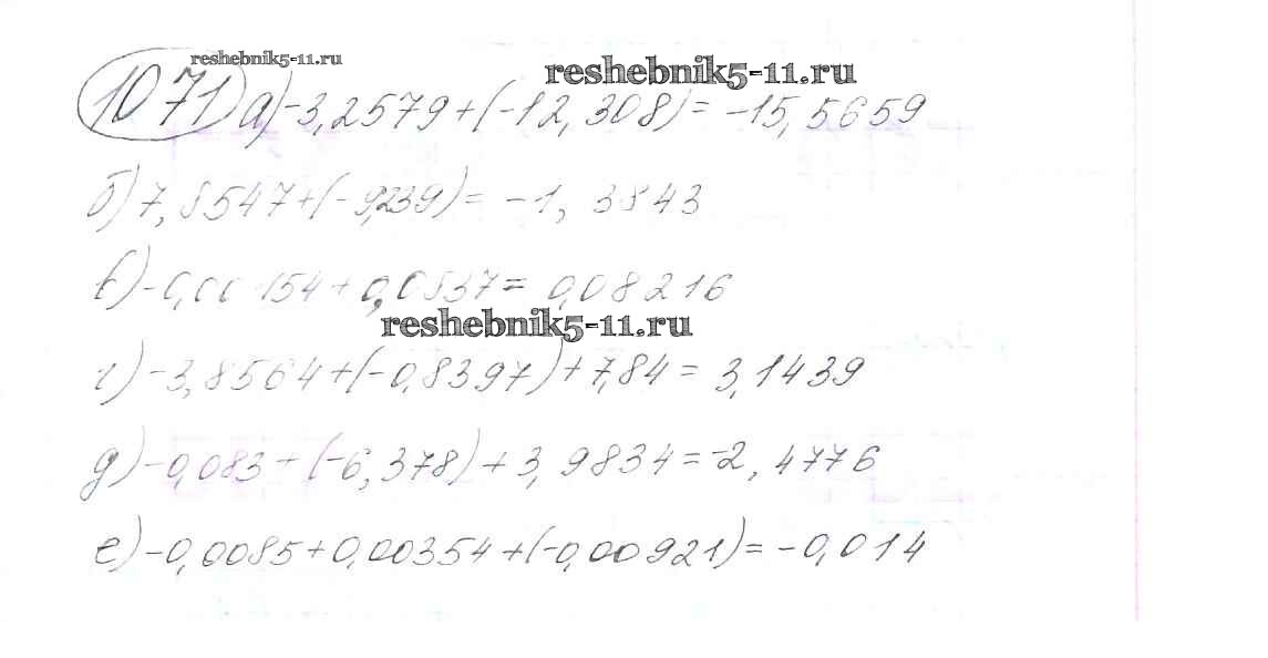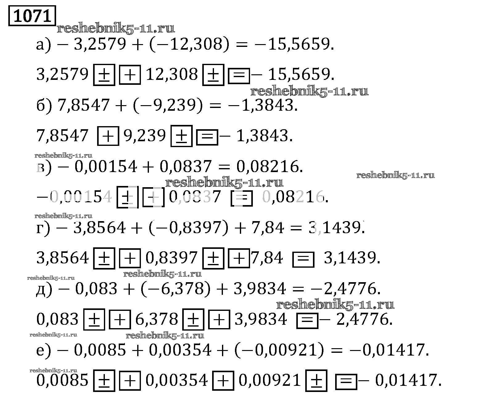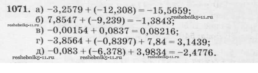 Готовая домашняя работа с ответами по Математике за 6 класс Виленкин, Жохов, Чесноков, Шварцбурд Учебник Мнемозина 2014 ФГОС - §6. Сложение и вычитание положительных и отрицательных чисел 1071