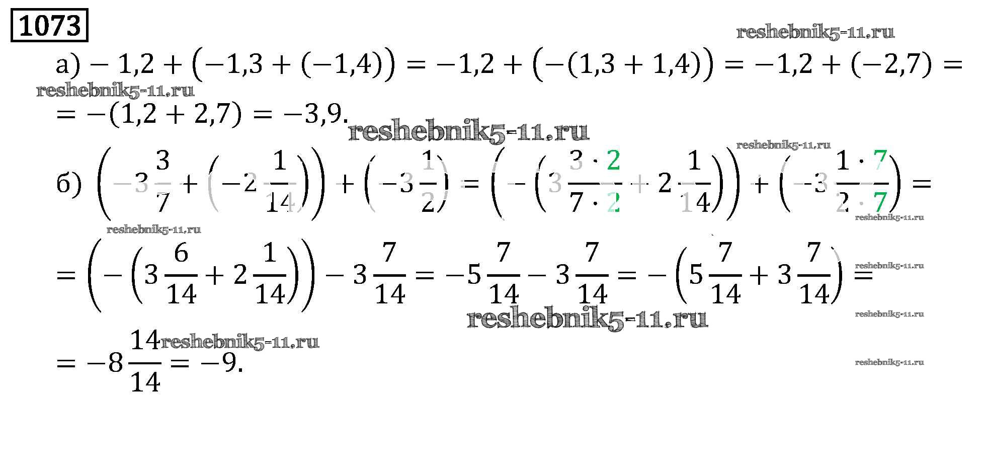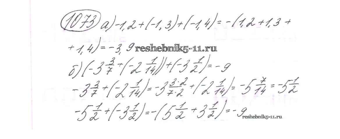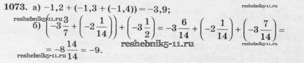 Готовая домашняя работа с ответами по Математике за 6 класс Виленкин, Жохов, Чесноков, Шварцбурд Учебник Мнемозина 2014 ФГОС - §6. Сложение и вычитание положительных и отрицательных чисел 1073