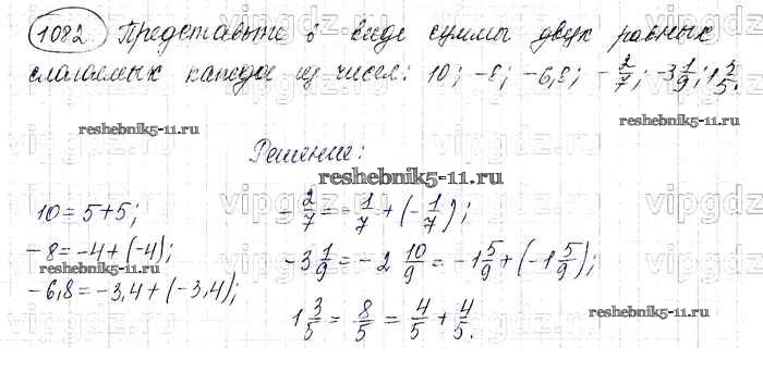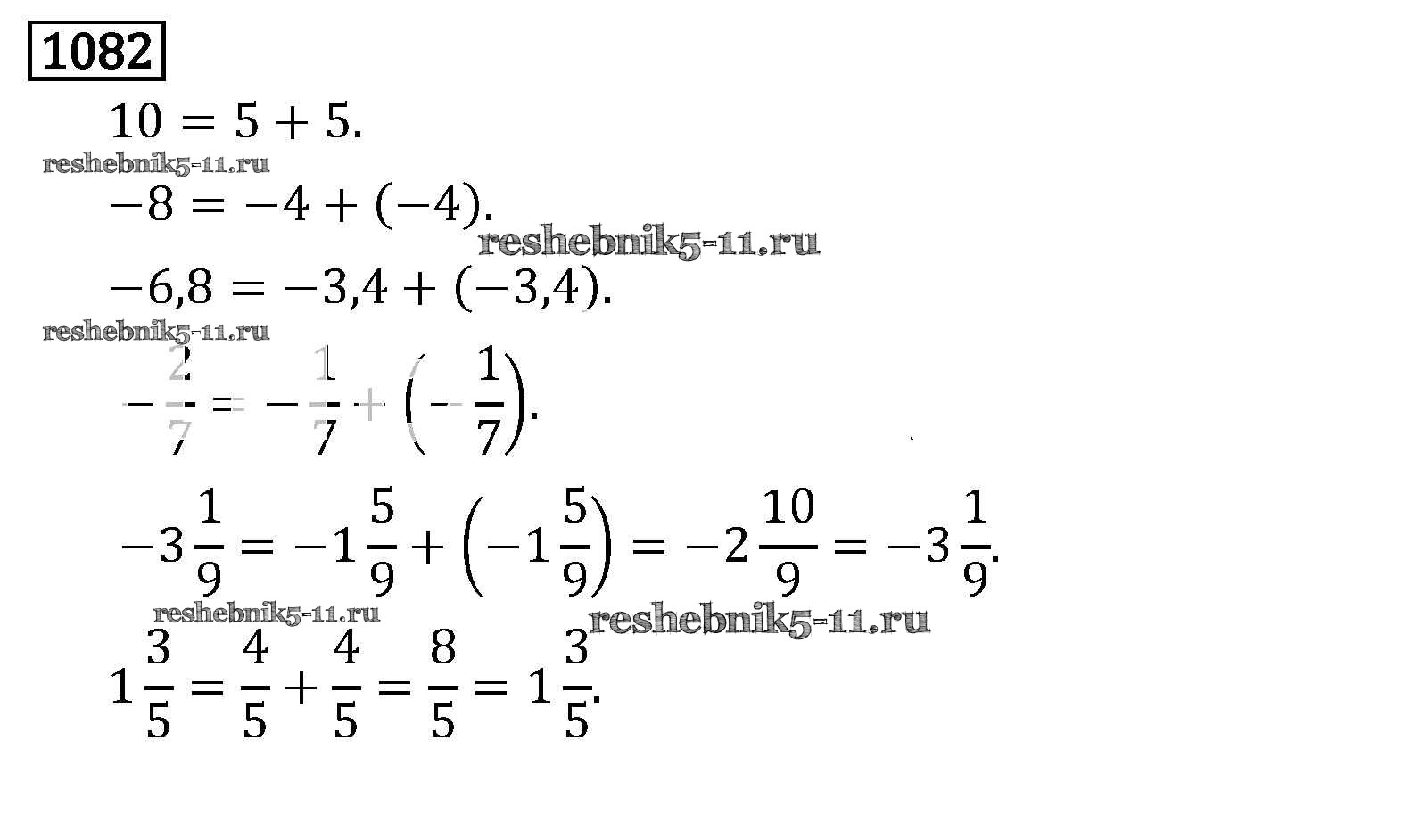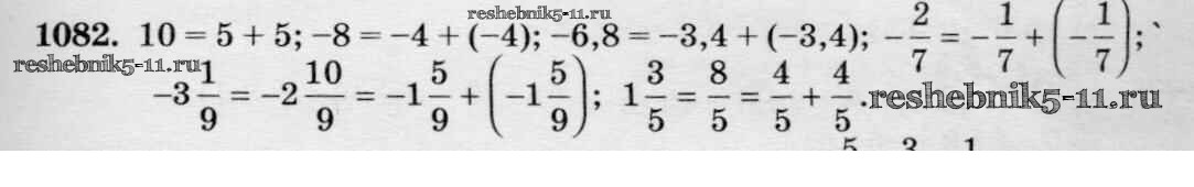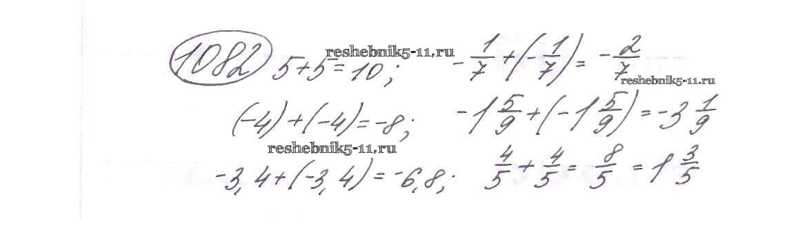 Готовая домашняя работа с ответами по Математике за 6 класс Виленкин, Жохов, Чесноков, Шварцбурд Учебник Мнемозина 2014 ФГОС - §6. Сложение и вычитание положительных и отрицательных чисел 1082
