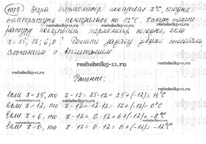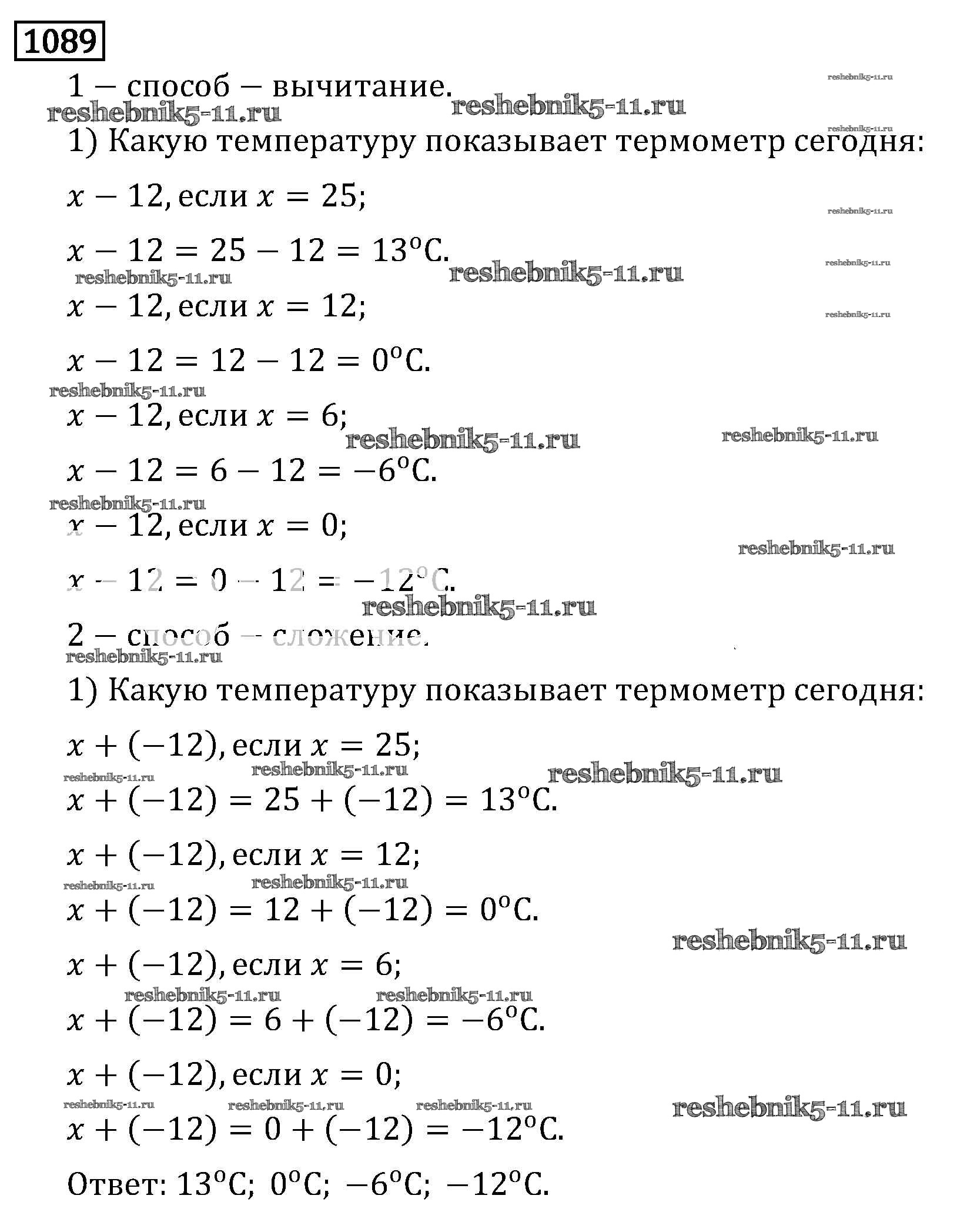 Готовая домашняя работа с ответами по Математике за 6 класс Виленкин, Жохов, Чесноков, Шварцбурд Учебник Мнемозина 2014 ФГОС - §6. Сложение и вычитание положительных и отрицательных чисел 1089